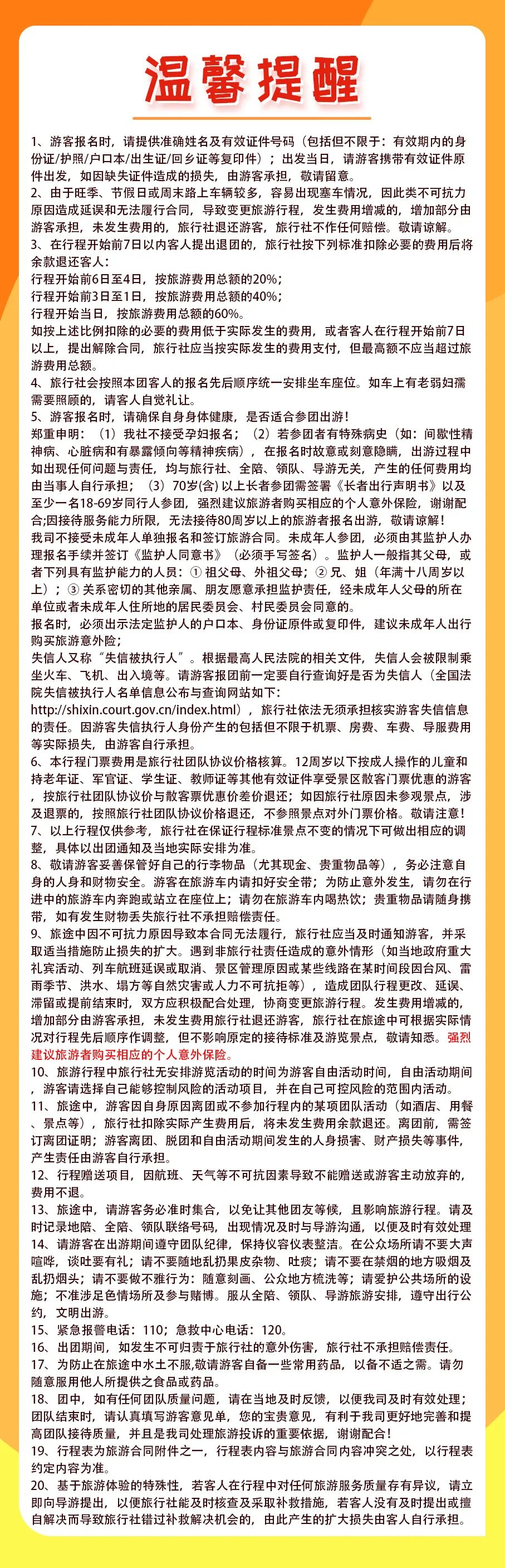 【以上行程时间安排仅供参考,实际按导游当天安排及交通情况为准】