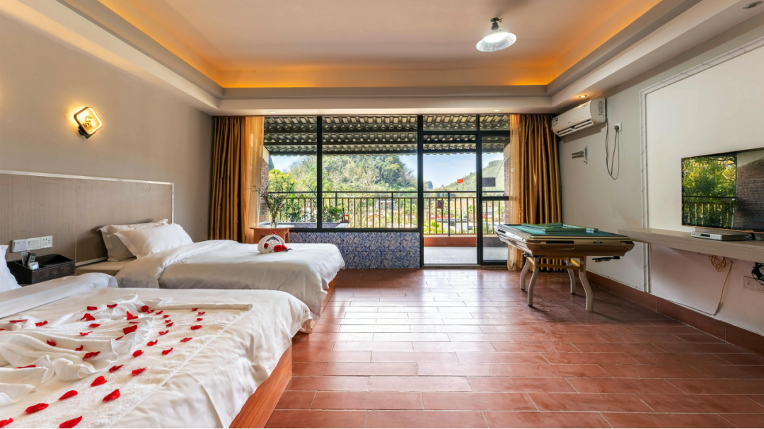 民宿位于清远小华山旅游景区内,毗邻英西峰林走廊。民宿年均气温26℃,周边是古村落,自然风情浓郁,坐拥峰林静谧山谷,峰林环抱,山清水秀,鸟语花香,是空气清新的天然氧吧,避暑圣地。