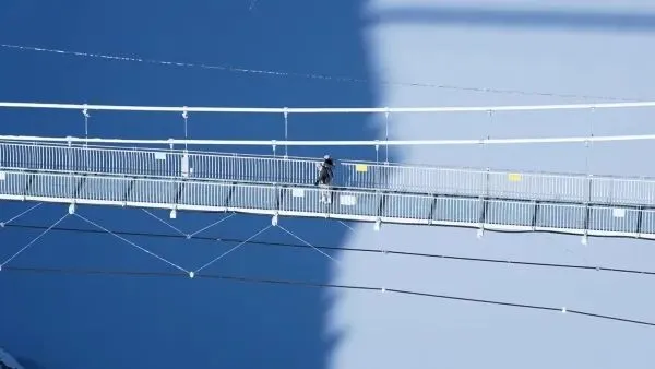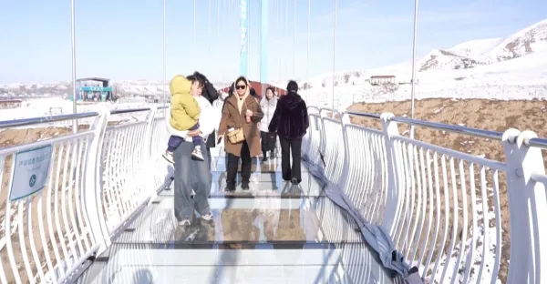 在肯斯瓦特蓝湖景区,银装素裹、人流如织。游客漫步玻璃桥、乘坐索道,在惊险体验与冰雪美景中欢度新春佳节。