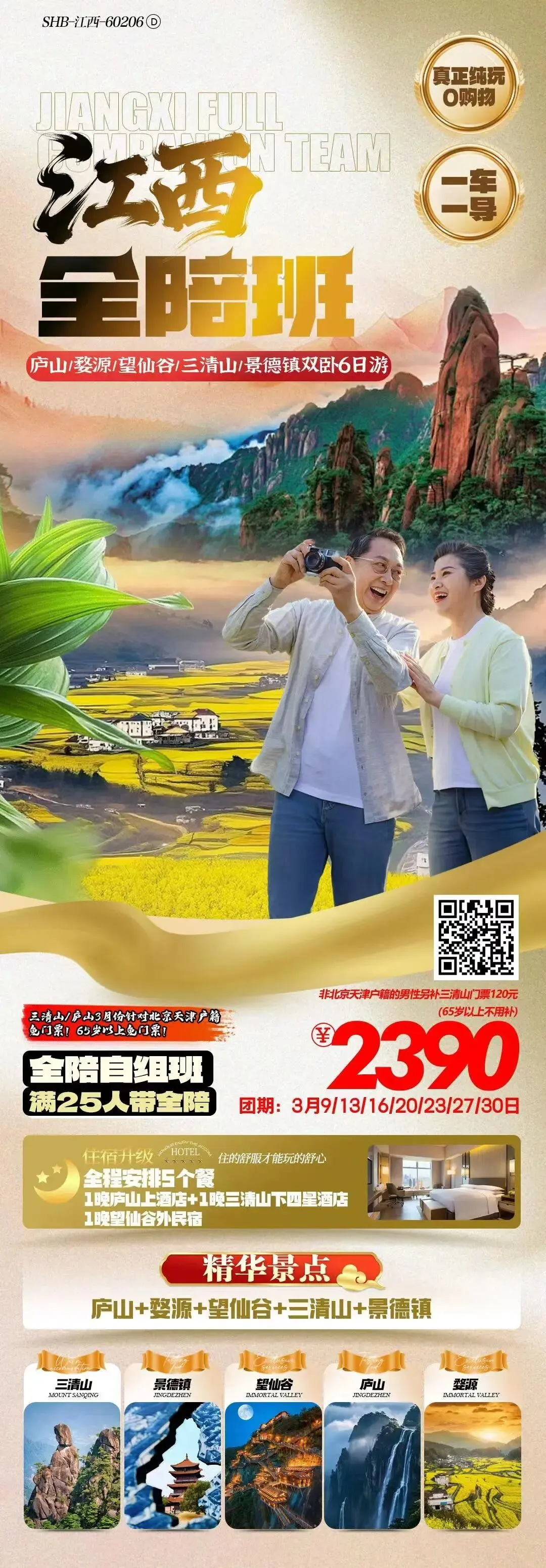 三清山/庐山3月份针对北京天津户籍免门票!65岁以上免门票!