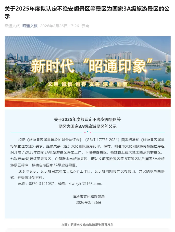 此次拟获评国家 3A 级旅游景区,是对景区资源禀赋、建设品质的充分认可。下一步,镇雄发展集团将以 3A 创建为新起点,持续优化景区运营管理、提升服务质量、丰富文旅业态,深耕农文旅融合发展,为擦亮 “赤水源头等你来” 特色旅游品牌、推动镇雄文旅产业高质量发展贡献积极力量。