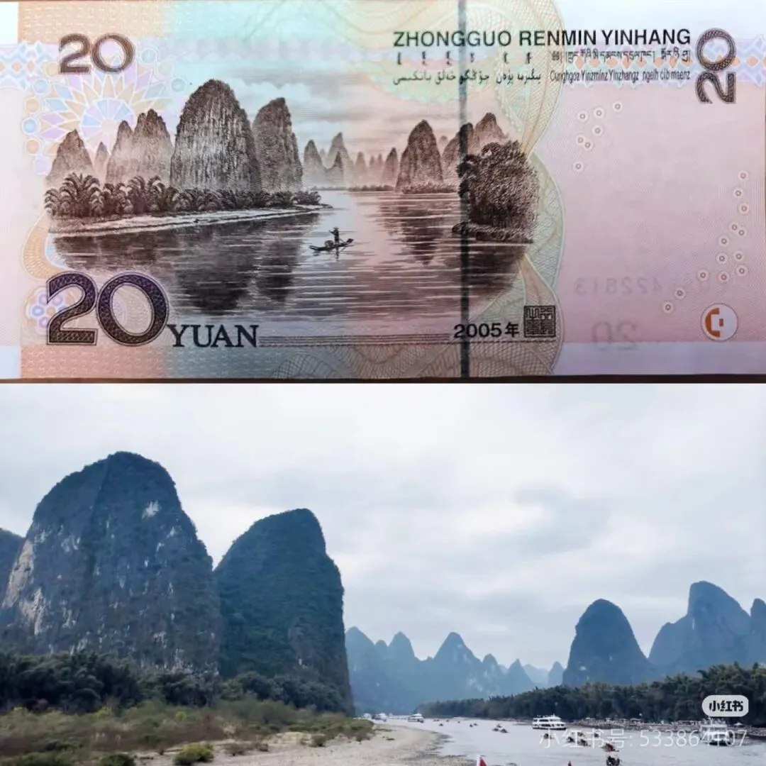 据说;最佳游览段是;杨堤—兴坪段了。打卡20元人民币背景"黄布倒影"。