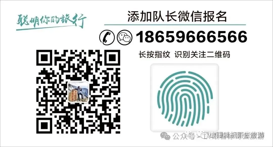 编辑短信:几月几日景点+真实名字+身份证号码+报名人数+微信转账=发送到名片以下二维码。报名电话:标哥18659666566(微信同步)