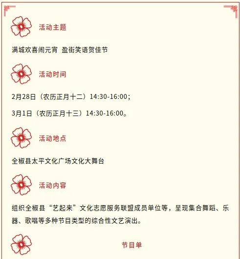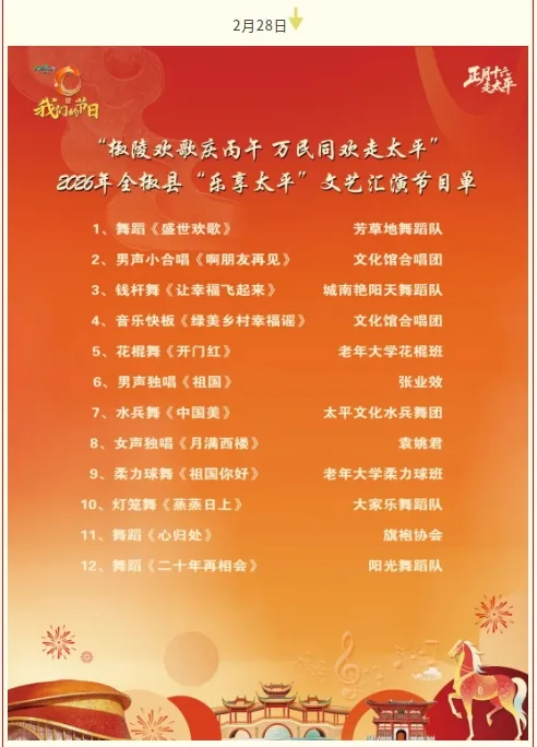 03 2026年全椒县“乐享太平”音乐演出 04 2026全椒“乐享太平”群众性文艺汇演活动 05 06 2026年全椒县花灯队伍走太平活动