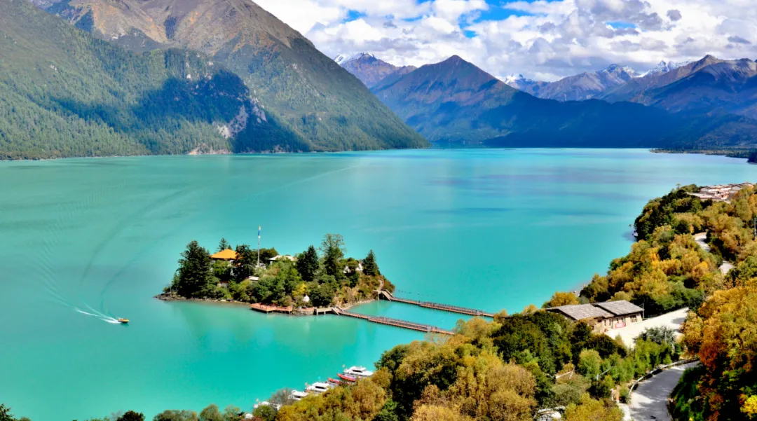 巴松措位于林芝工布江达县,是藏传佛教红教的著名神湖,宗教地位很高。湖水碧绿柔美,周围青山依依,风景非常不错。湖心岛上的错宗工巴寺历史悠久,有特别的雕塑和建筑,也是祈福的圣地。