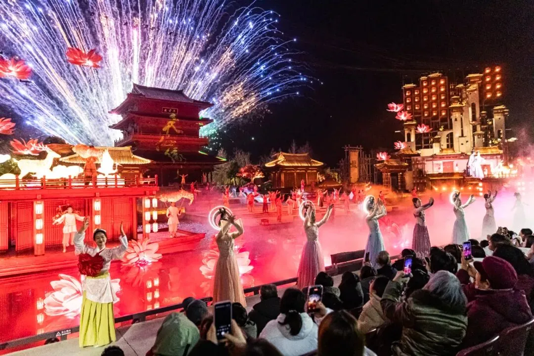 春节期间,东台西溪迎来客流高峰,景区内人头攒动、喜气氤氲,来自五湖四海的游客齐聚于此,共赴一场年味与诗意的约会。这份超高人气,离不开全天候、沉浸式的演艺盛宴与烟火氛围加持。