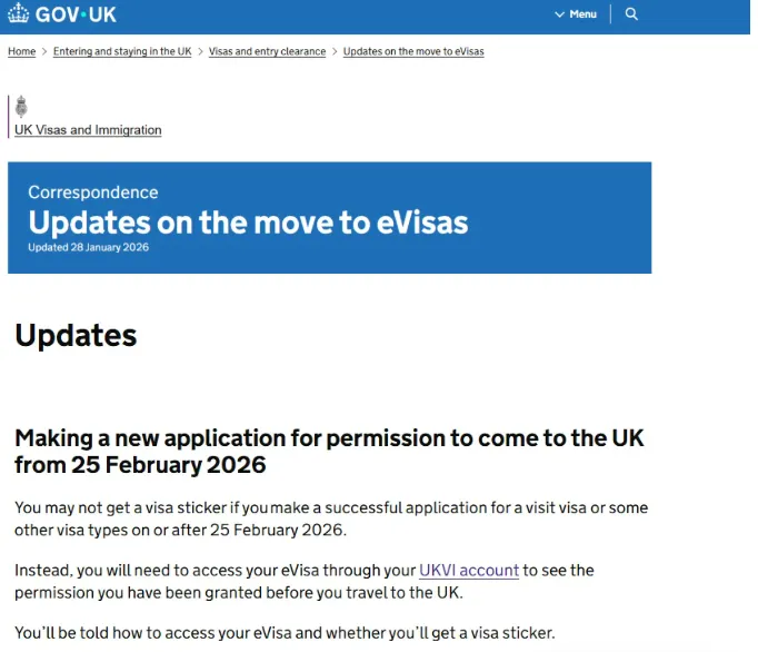 🇬🇧英国签证与移民局(UKVI)官宣:2026年2月25日起,英国正式迈入电子签全新时代,访问签、季节性工人签、过境签等多款签证再也不发实体贴纸啦,无纸化通关安排上!