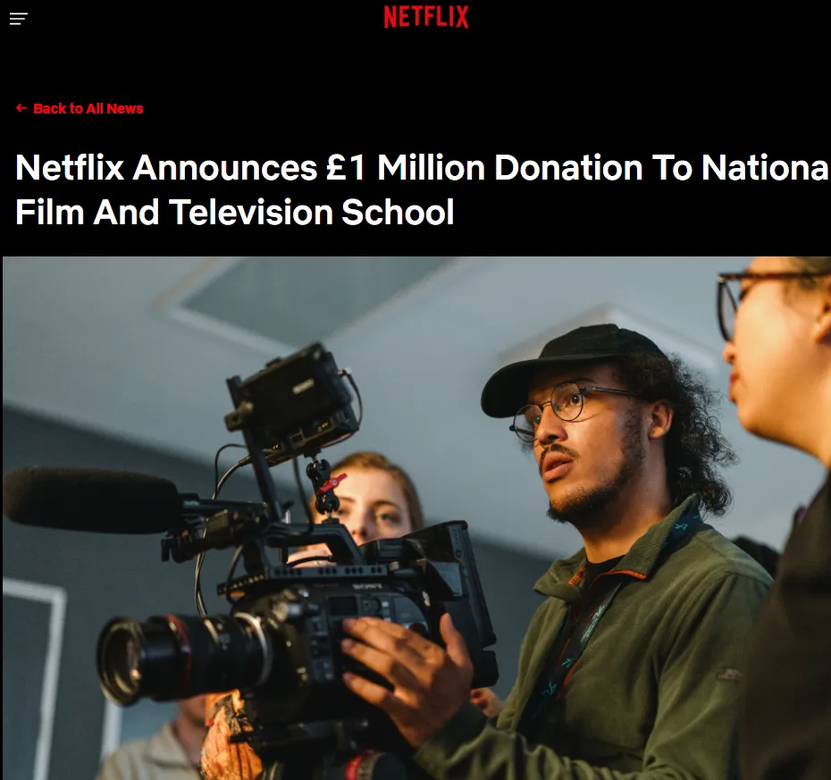 Netflix官宣大手笔——向英国国家电影电视学院(NFTS)捐赠100万英镑,直接助力新创意中心落地!