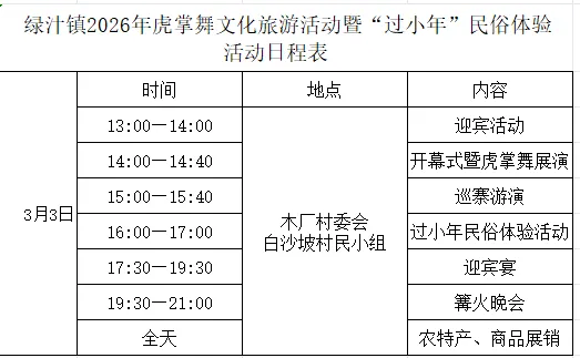 活动预告|绿汁镇2026年虎掌舞文化旅游活动暨白沙坡“过小年”民俗体验活动来啦~
