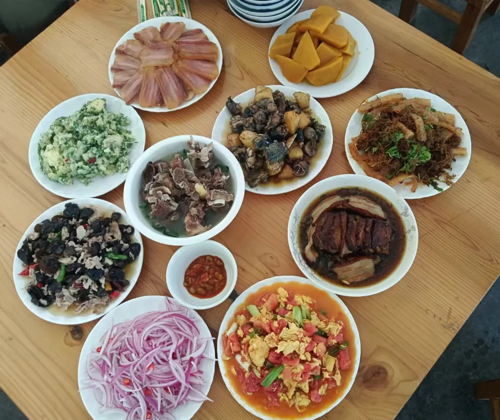 迎宾宴为生态农家宴,需提前报名预订。菜品含火腿、放养土鸡、土山羊、土鸡蛋时令野菜、农家小菜等。每桌可坐8—10人,260元/桌,数量有限,订完即止。