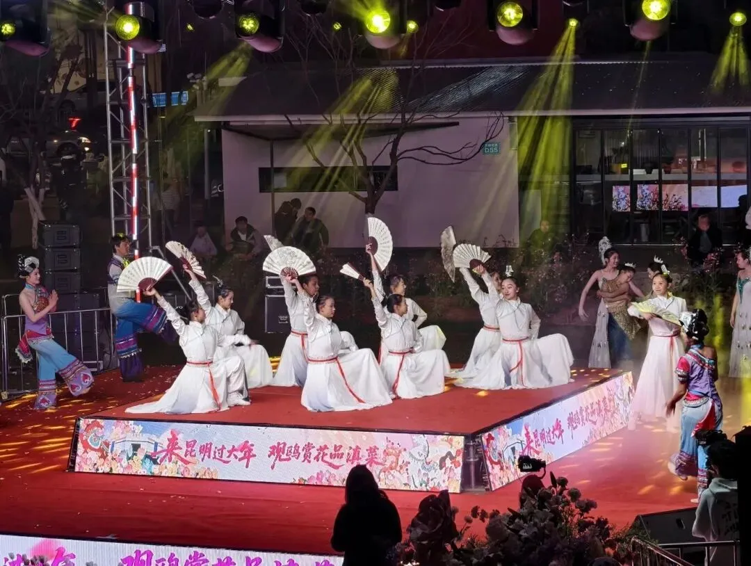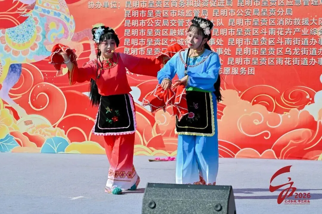 传统文化与现代艺术交相辉映。在洛龙公园,“花间序曲·艺绽新呈”系列活动从初一至初三每天上演。初一综合性演出中,非遗舞蹈《板凳龙韵传》气势磅礴,《春节序曲》点燃全场年味;初二滇剧专场呈现《呈贡的传说》《六尺巷》《三女敬孝》等经典剧目;初三花灯专场由呈贡区老年大学艺术团献演《新游春》《打渔收子》《龙腾盛世》等11出精彩剧目。这些演出让传统艺术在春节舞台上焕发新光彩,现场座无虚席,掌声不断。