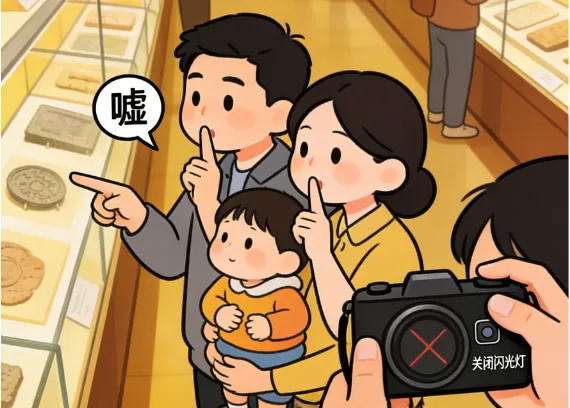 走进文博场馆、民俗展厅,保持安静、轻声交流,不追逐嬉闹,拍照时关闭闪光灯、不触碰展柜,用心感受文化魅力,做有礼参观者。