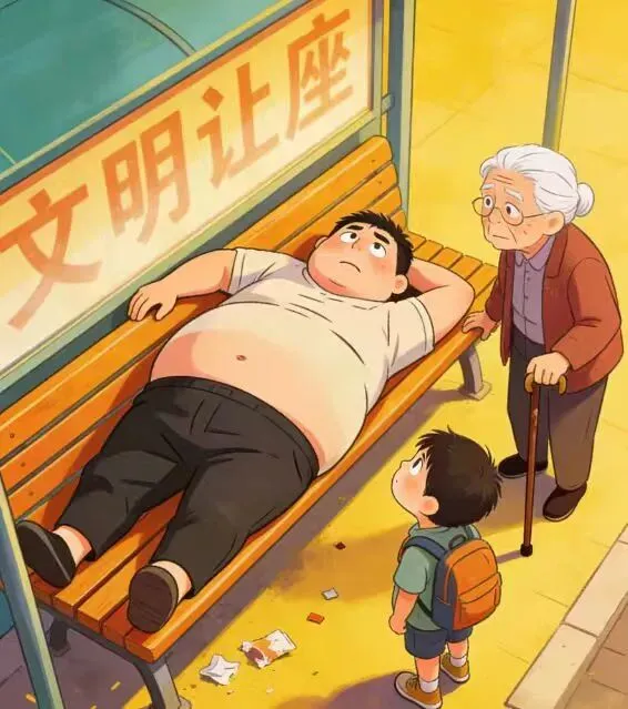 有的游客在景区长椅、休息区随意躺卧、脱鞋,一人霸占多个座位,拒绝给他人让座,不顾公共形象,影响公共空间正常使用。