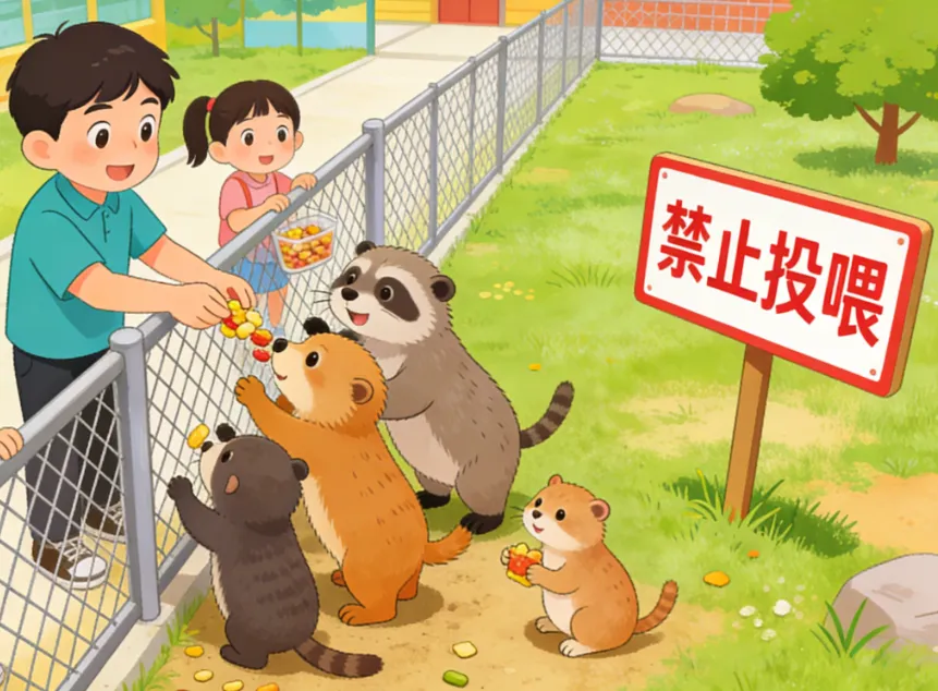 假期间动物园成为热门打卡点,有的游客无视提示,自带零食投喂小动物,甚至投喂不利于动物健康的食物,引发动物争抢,破坏园区生态与管理秩序。