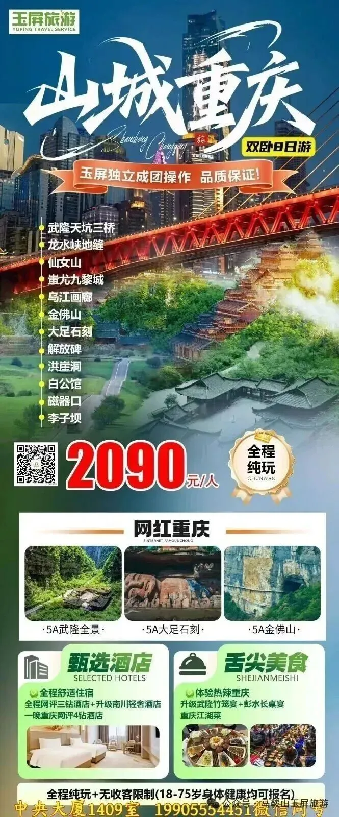 全景重庆纯玩8日游日期:3月8满/15/25日