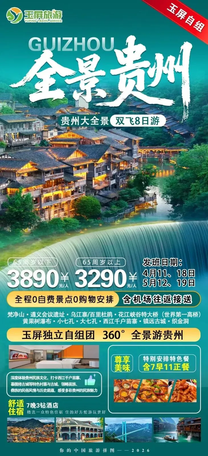 ❤️放心之旅:玉屏自组全陪班,不转拼不转卖,品质保障
