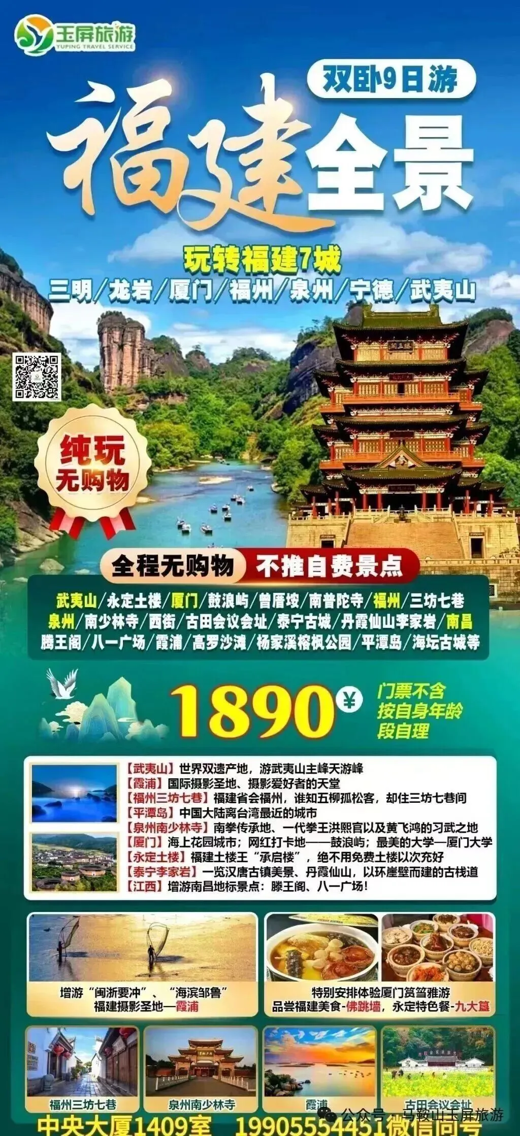 [强]一次玩转福建7城:三明.龙岩.厦门.福州.泉州.宁德.武夷山。