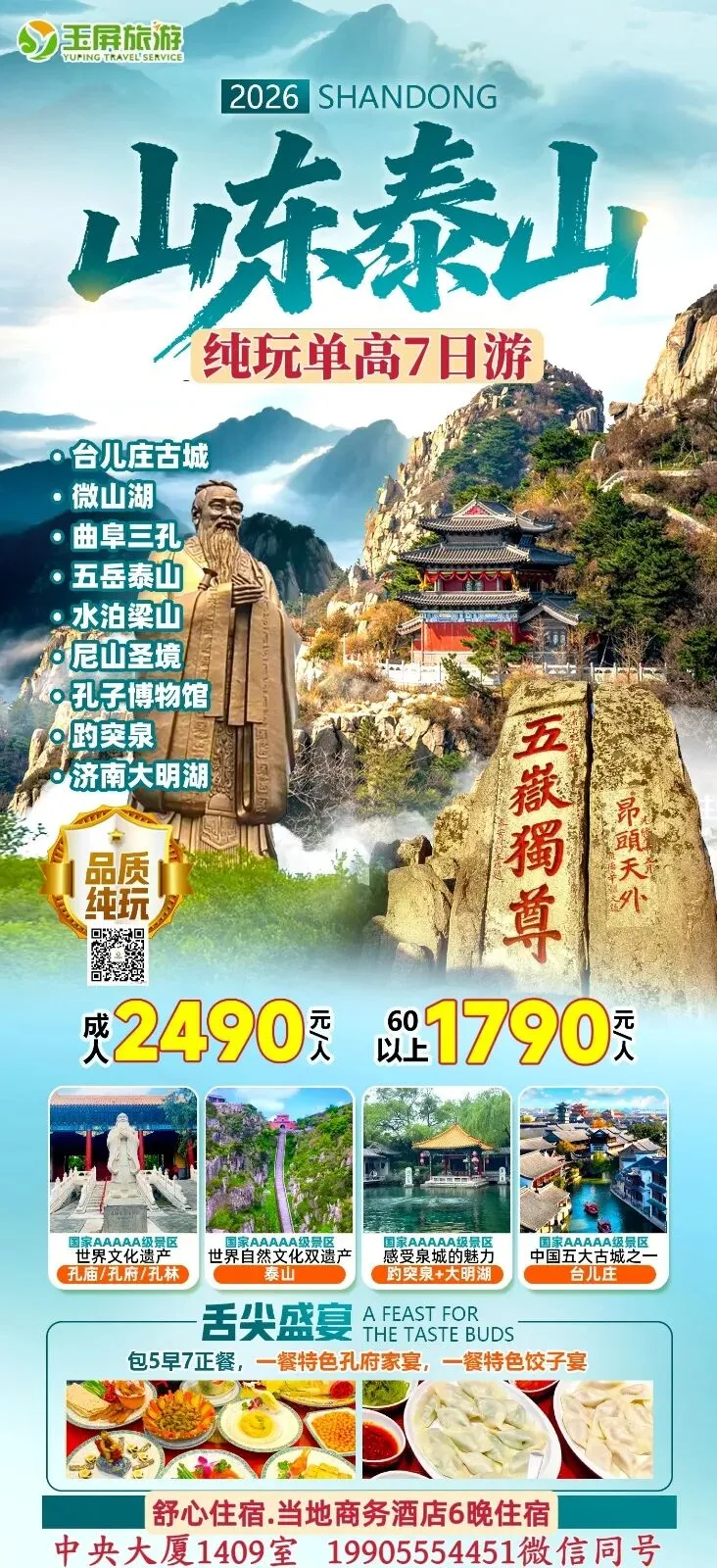 🍂 🍂 微山湖.曲阜三孔.台儿庄古城.五岳泰山.水泊梁山.尼山圣境.春秋书院.济南大明湖等7日游