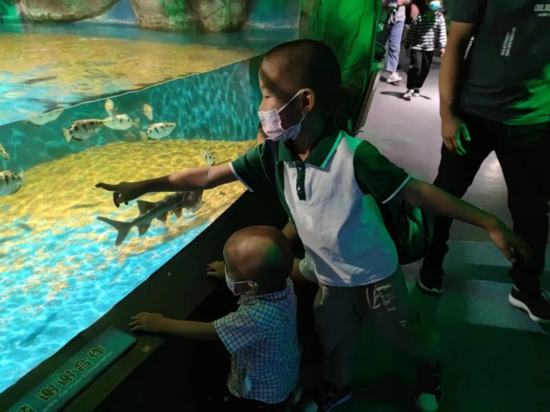 青岛海底位于青岛汇泉湾畔,毗邻青岛著名风景区鲁迅公园、青岛第一海水浴场和五四广场,分为:潮间带、海底隧道、船舱通道、海洋剧场、圆柱展缸、热带雨林区、生物精品区、科普教育区等几大区域。在这里可以近距离、真实的看到我喜欢的海洋生物,太开心了。