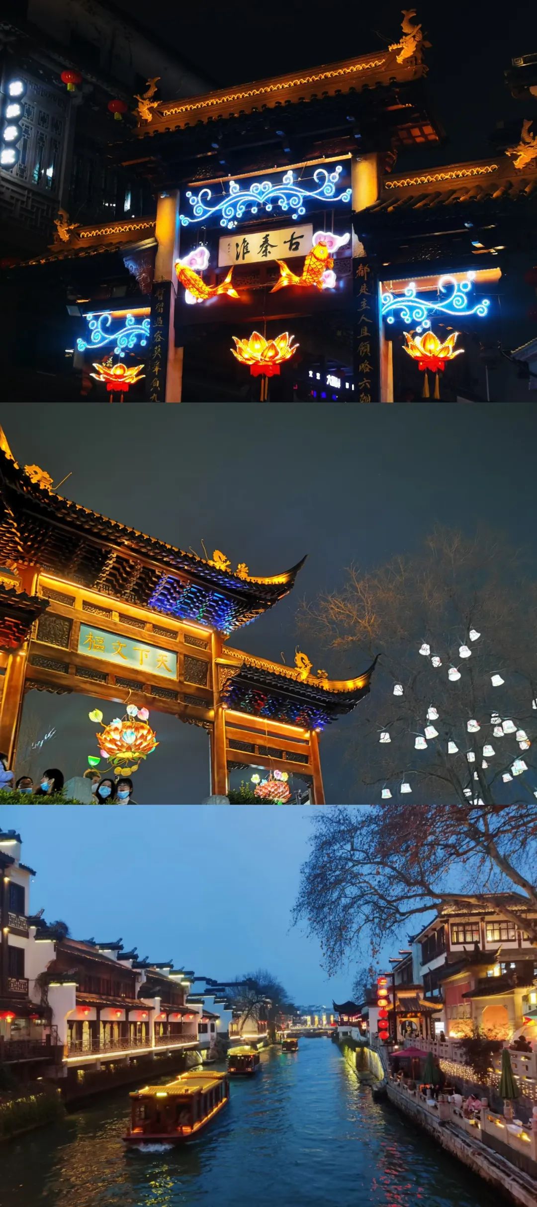 “锦瑟微澜棹影开,花灯明灭夜徘徊”多少文人墨客在这里留下诗篇。坐船夜游秦淮河,两岸的烟雨楼台缓缓向后移动,仿佛要驶向千年前的那个梦幻古都。灯火通明的石桥上,站着看风景的人,却不知自己亦是景中人。