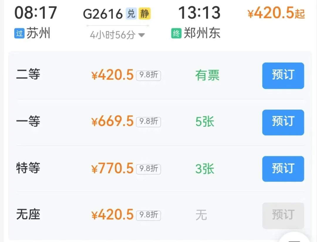 建议高铁班次: