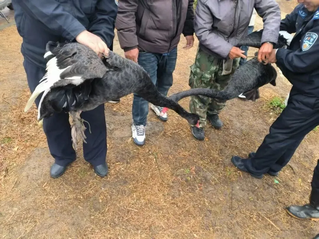 景区黑天鹅结对“翘班”出逃, 民警出手助其返回“工位”!