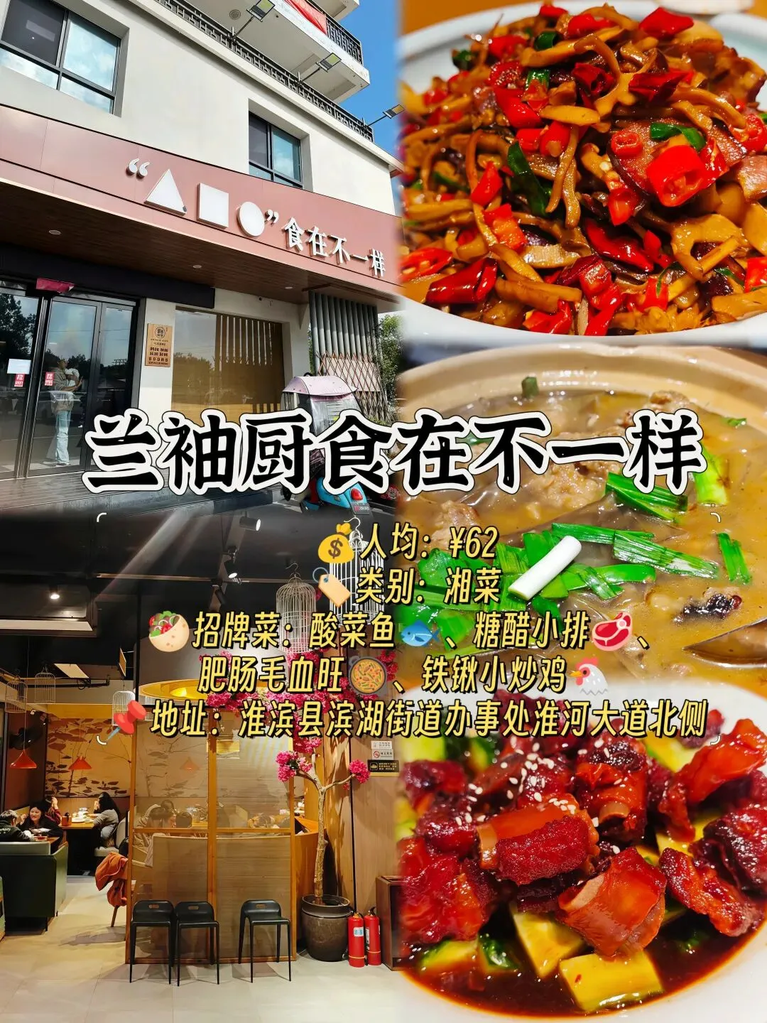🥙招牌菜:酸菜鱼🐟、糖醋小排🥩、肥肠毛血旺🥘、铁锹小炒鸡🐔