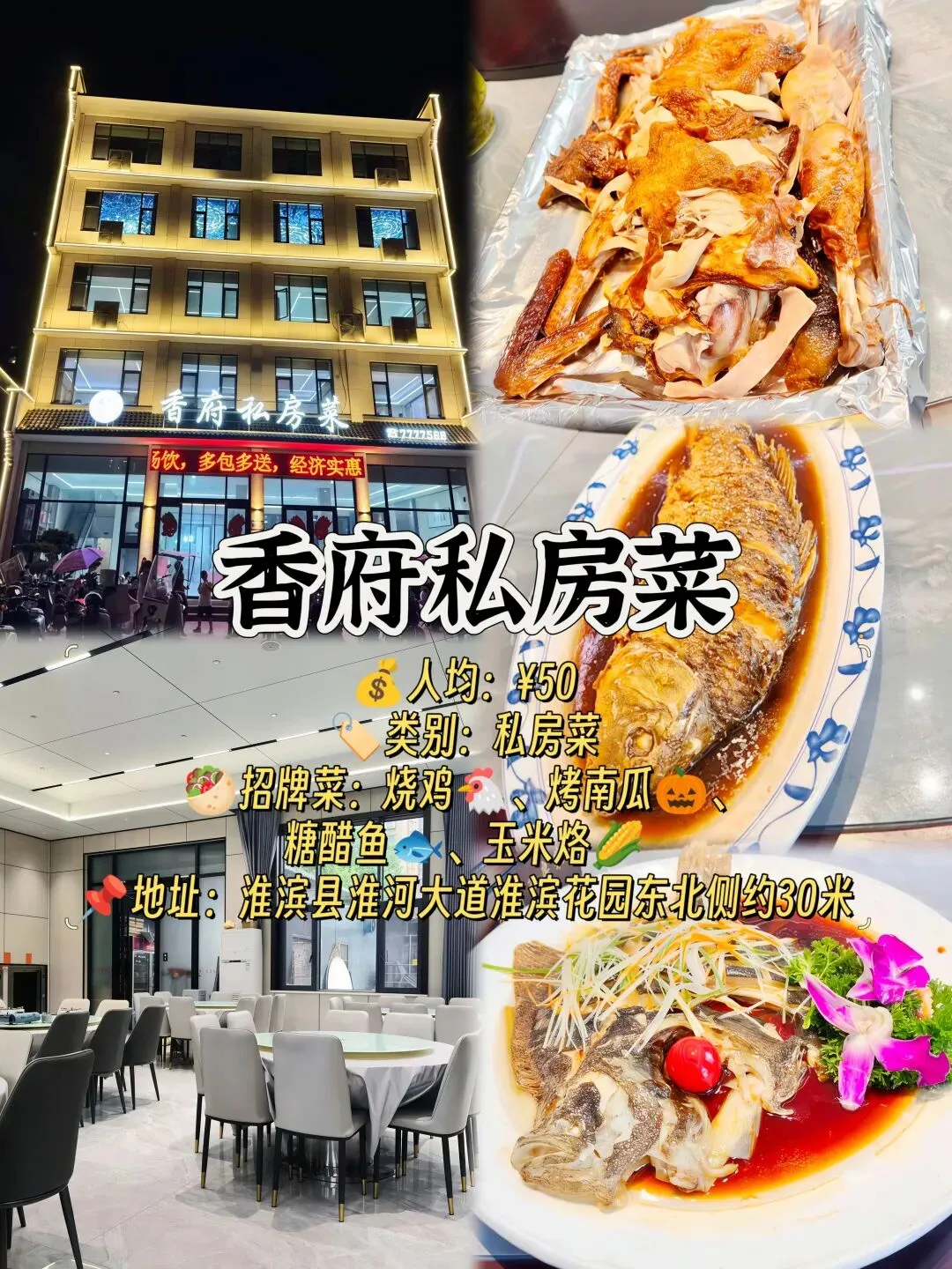 🥙招牌菜:烧鸡🐔、烤南瓜🎃、糖醋鱼🐟、玉米烙🌽