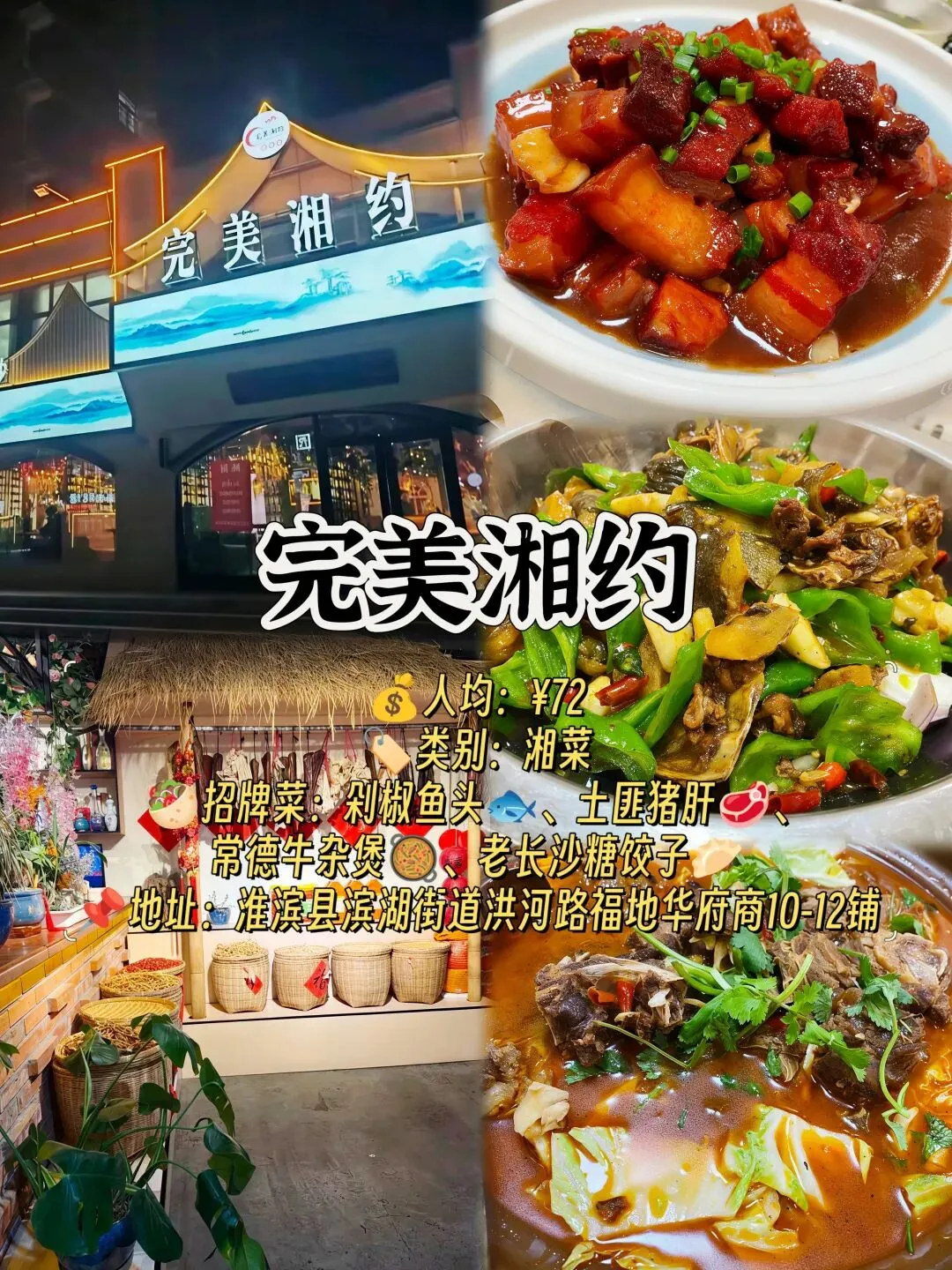 🥙招牌菜:剁椒鱼头🐟、土匪猪肝🥩、常德牛杂煲🥘、老长沙糖饺子🥟