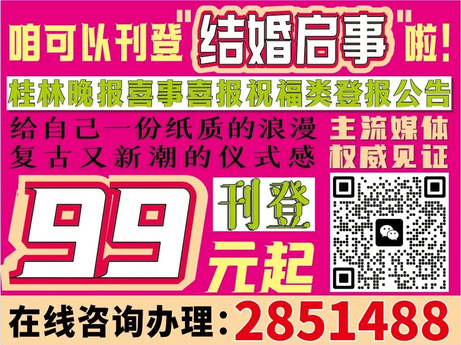 官方足不出户线上办理《桂林晚报》《桂林生活网》公告、喜讯、遗失声明啦! 24小时微信咨询:269227921