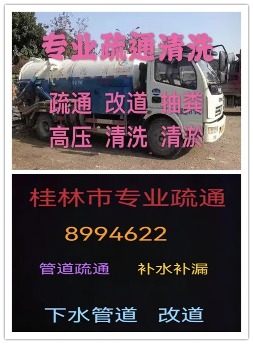 桂林市专业管道疏通,清理化粪池,沙井,高压清洗各种管道,改道等