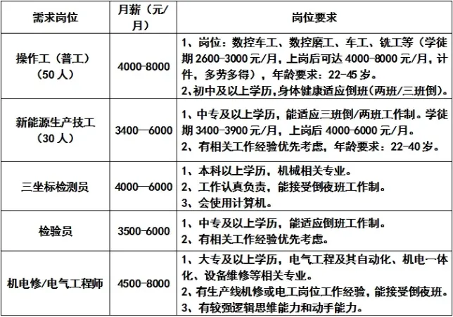 机械、电气、仪表技术员●综合薪资:4000-8400元/月●招聘人数:2人●岗位要求机电仪类相关专业,大专以上学历。