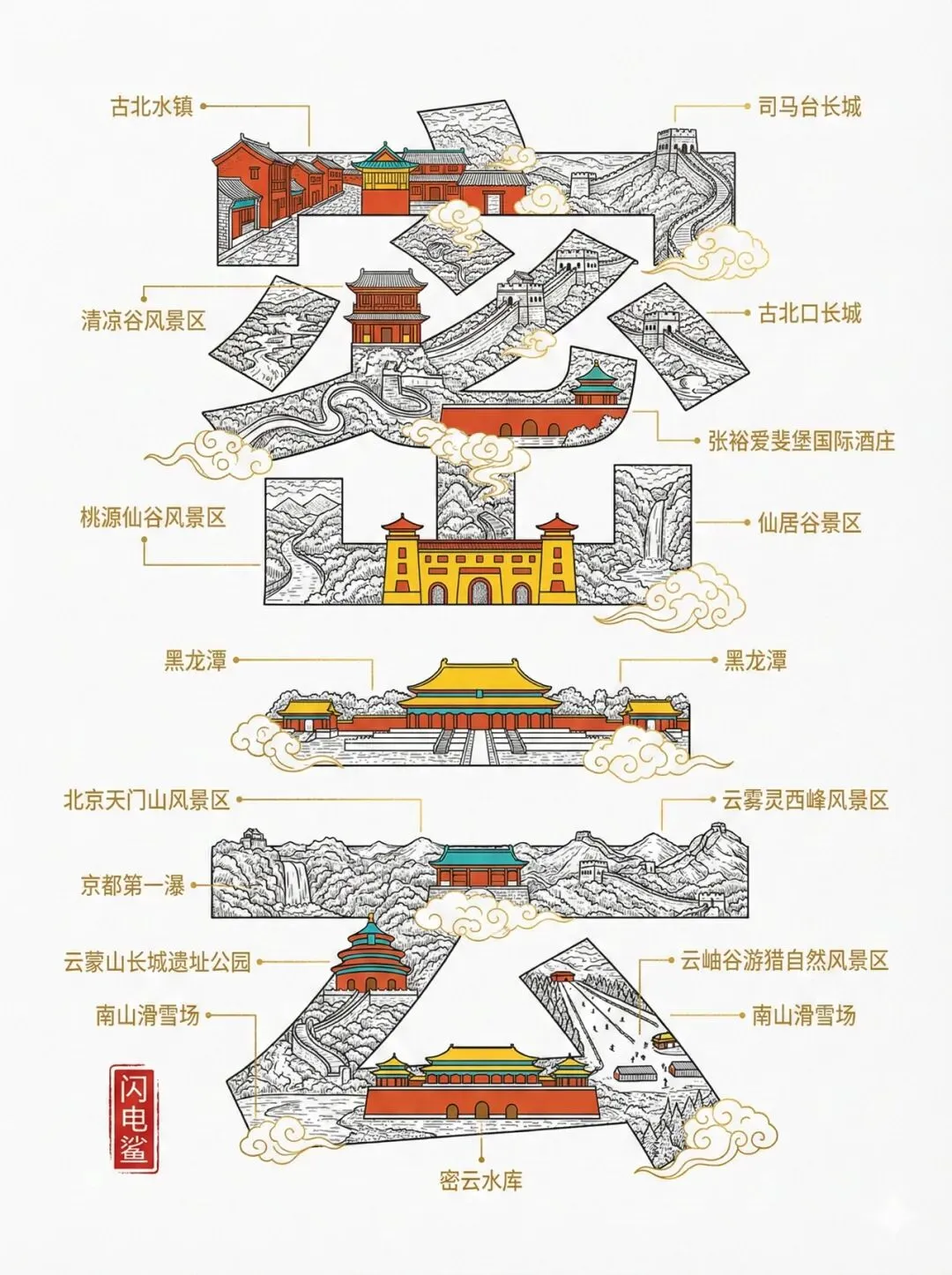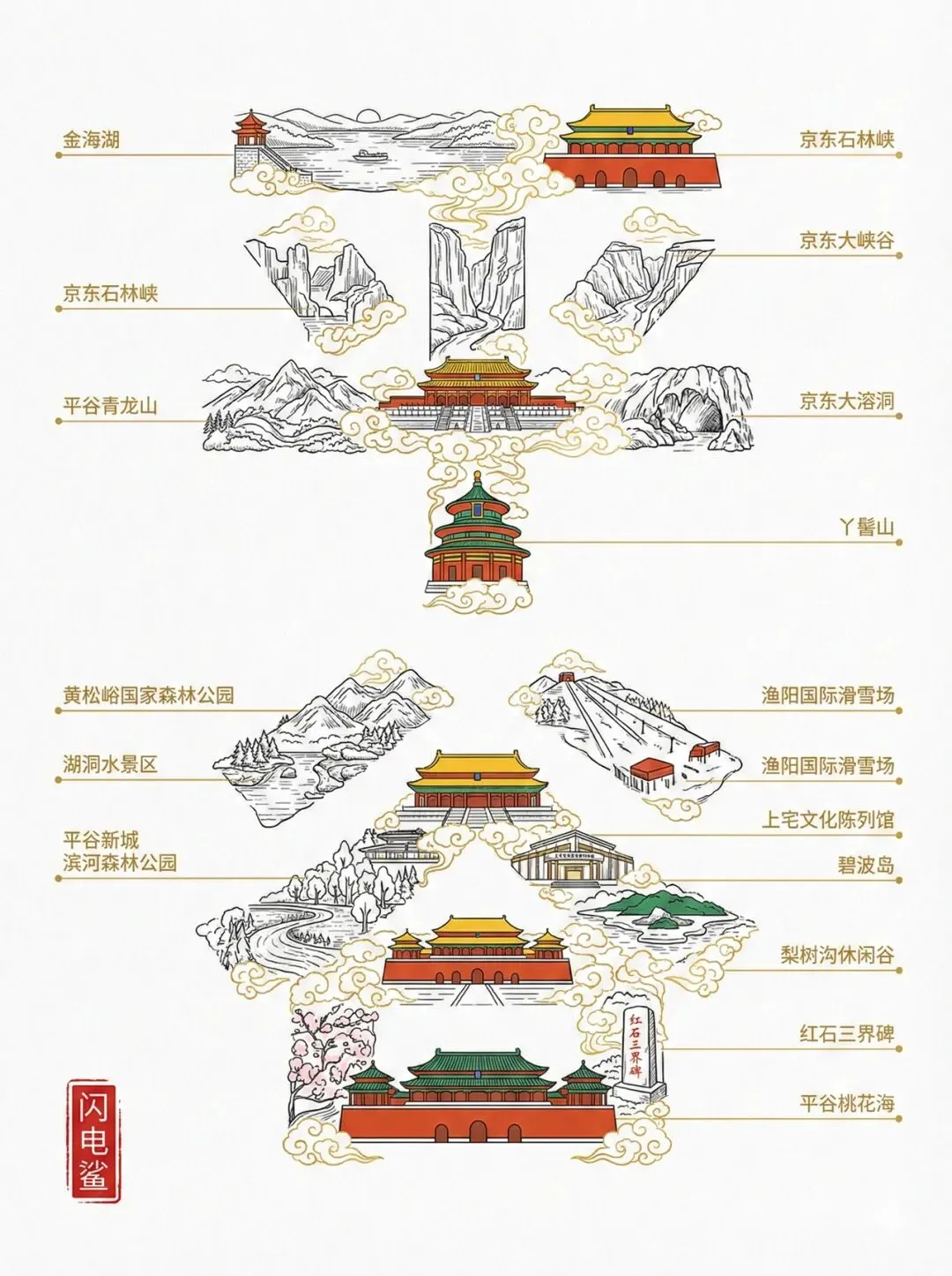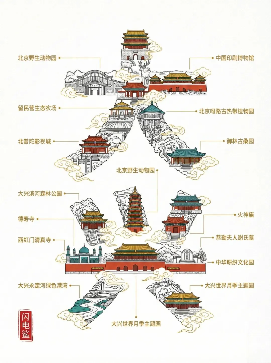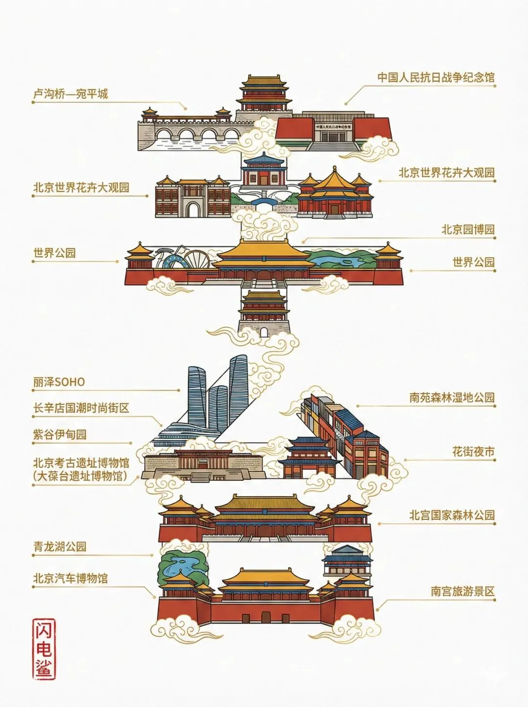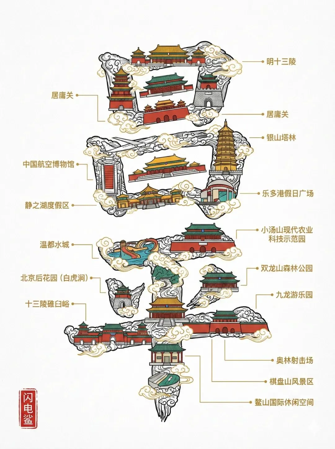#什刹海老北京风情#奥林匹克公园新地标#北京动物园亲子游#故宫天坛颐和园打卡#北京旅游攻略大全#圆明园遗址公园探秘#明十三陵历史之旅#北京环球度假区体验#北京特色景点地图 制图:闪电鲨