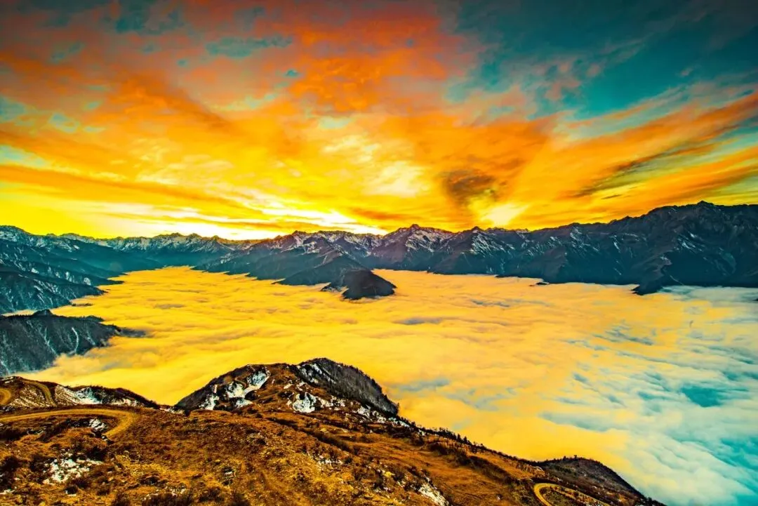湾坝云海是电影中雪山云海的取景地之一,也是整个甘孜州规模最大、最容易见到的云海。