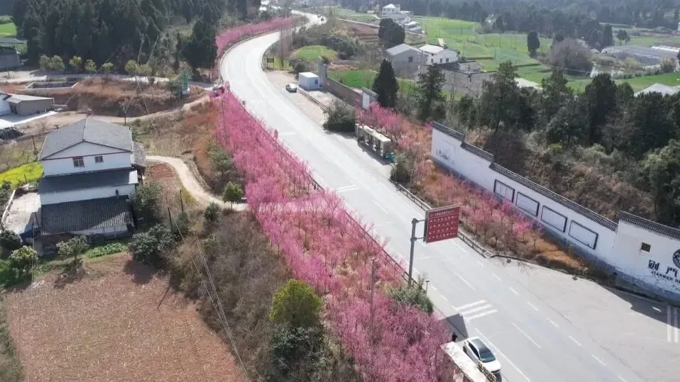 下普路沿途红梅竞相绽放