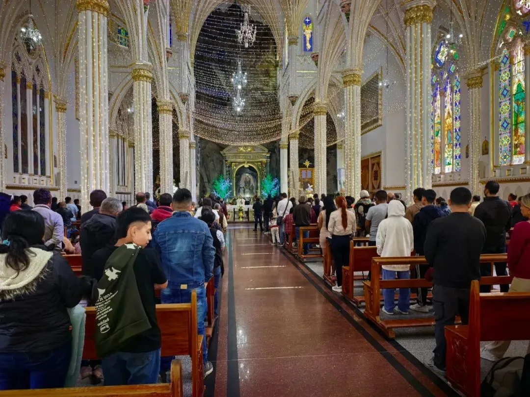 他寻位而坐,静静体验这异域仪式:牧师先诵经文、宣讲教义,西班牙语虽不解其意,想来不外乎《旧约》《新约》与福音故事;继而圣祭,信徒将面饼与葡萄酒奉上祭台,牧师祝祷后宣告"化为圣体圣血";最后是领圣体,众人排队上前,牧师将白色圣饼送入口中,领受者在胸前划十字。圣歌穿插其中,神圣肃穆,又流淌着信仰的温度。