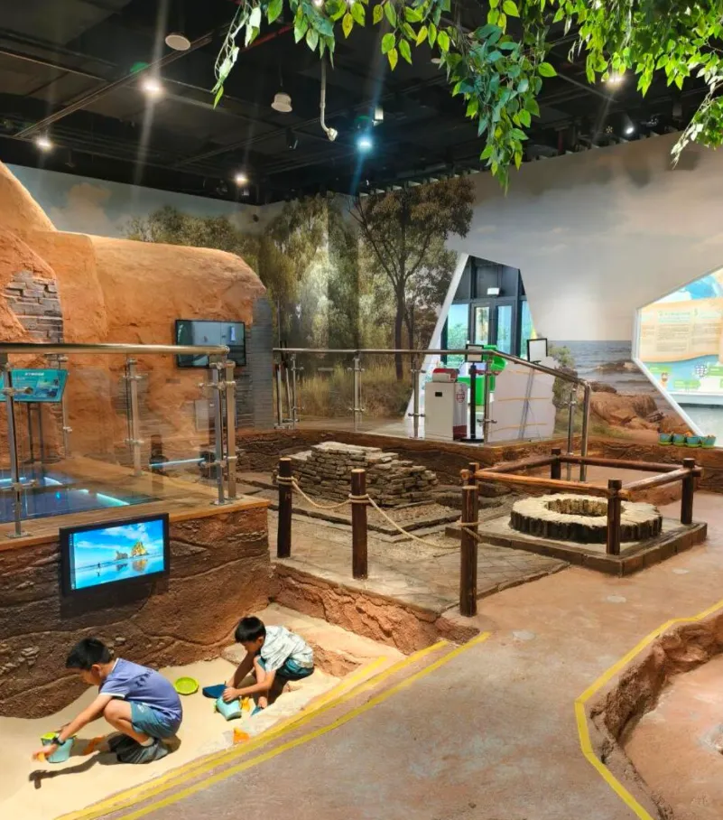 公众考古活动中心简直是博物馆界的“儿童乐园”、“手工工作室”!在模拟考古区,小盆友可以在沙池里拿着小铲子“挖文物”。还有文物修复体验,给你几块陶片,自己动手拼贴复原,沉浸式当一回文物医生。