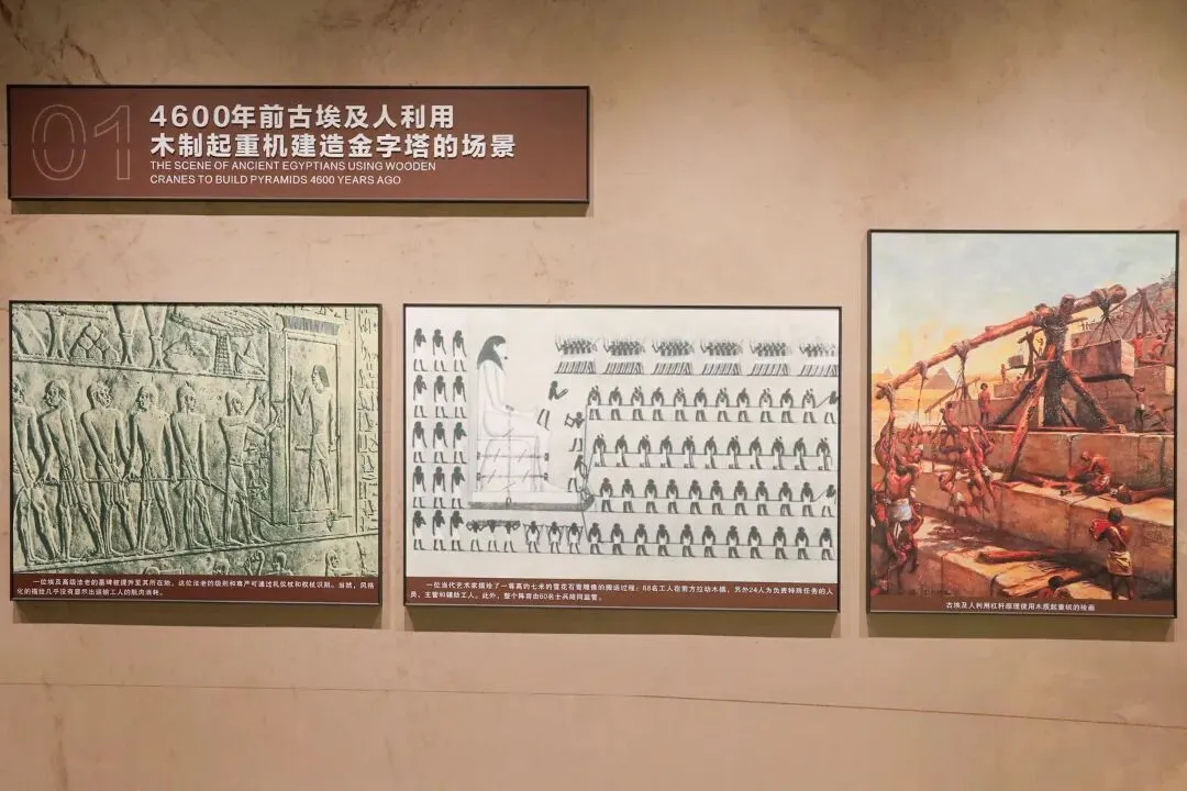 文明之基展厅,解锁古埃及、中国商周的古老起重智慧,邂逅桔槔、辘轳等 “起重黑科技”。