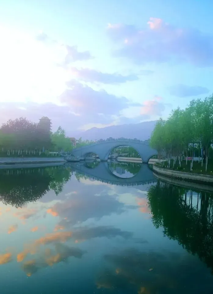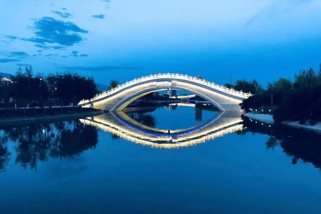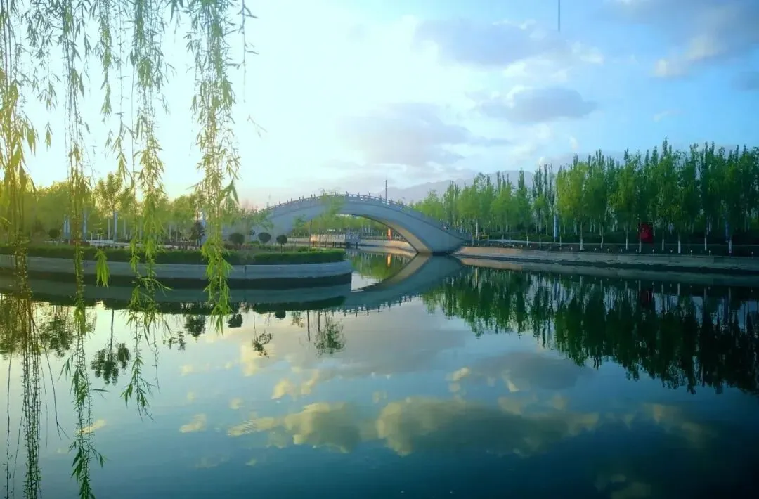 斑斓夺目的风车长廊 与蓝天白云交相辉映 放慢脚步,徜徉在这风车的海洋中 仿佛置身于一个梦幻炫彩的世界 这里是大人们的拍照圣地 也是孩子们的快乐天堂 快叫上你的家人、朋友 一起来这个童话世界打卡吧 将军河景区位于第二师铁门关市,是在原十八团渠基础上改扩建而成,景区以十八团渠开创者——王震将军的“将军”二字命名。景区总长度20公里,在将军河的南边坐落的是渤海湾景区和南泥湾景区,将军河景区与其共同构成了“两湖两湾一河”的独特水景。 将军河水静静地流淌 侧身穿过铁门关市 向世人诉说着过去的峥嵘岁月 奔腾到西,流入万亩军垦良田 浸润着人们的幸福生活 将军河景区共有大小桥梁22座 包括9座人行桥,8座公路桥,5座岛屿桥