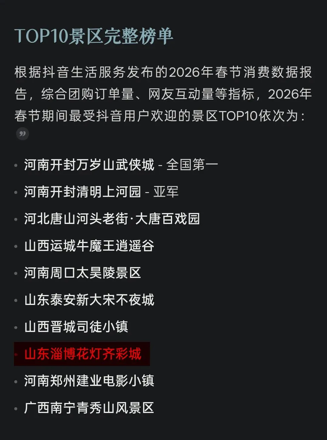 爱达喜报!春节期间最受欢迎景区TOP10!