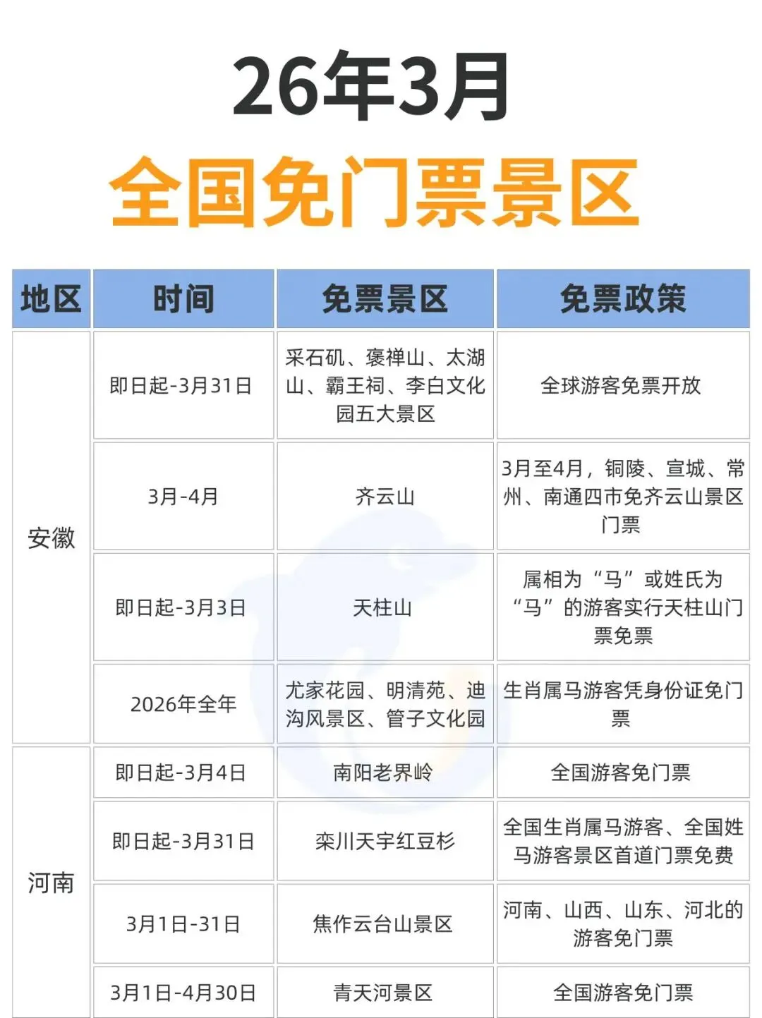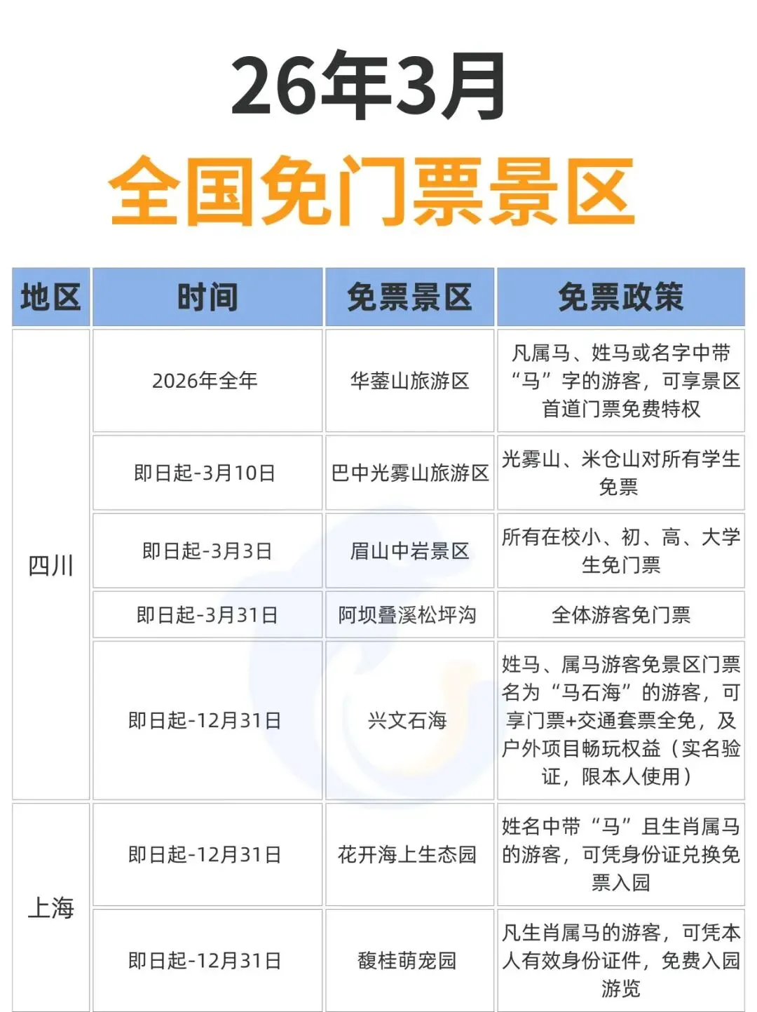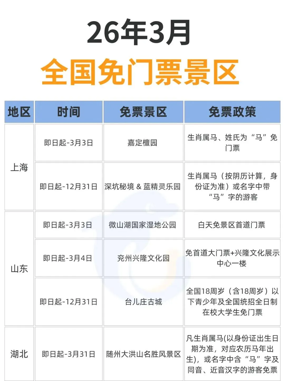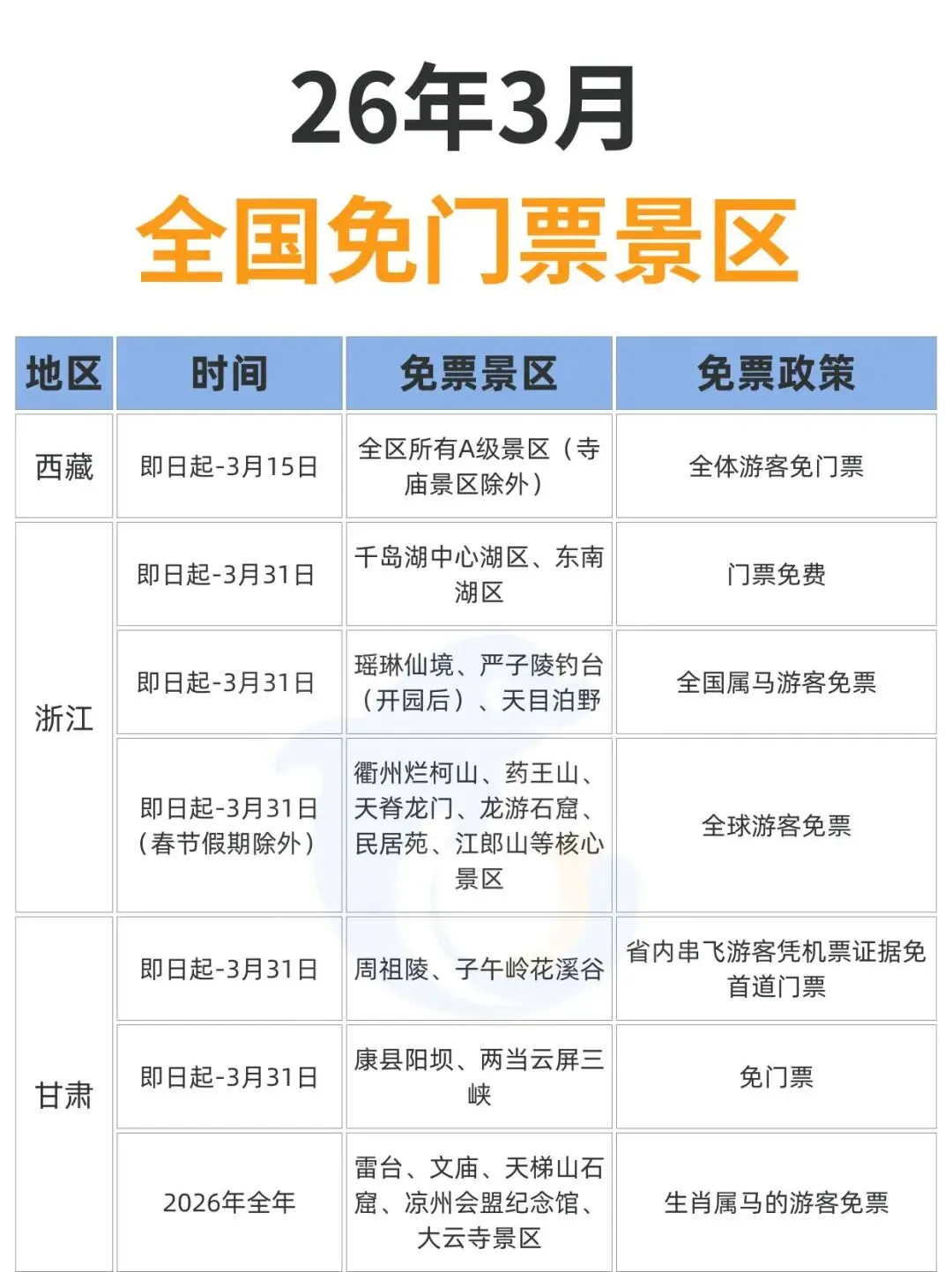 您现在的位置是:首页 > 国内旅游目的推荐 > 正文 国内旅游目的推荐 2026年3月,全国免门票景区汇总 admin2026年02月27日 23:08:41国内旅游目的推荐1 2026年3月,全国免门票景区汇总2026年3月,盘点国内免费景区大合集,总有一个适合你。感觉以后免费的景区会越来越多, 你觉得呢?来源丨携程旅游 转载请说明来源于"旅荐网",部分内容转载自网络,如有侵权请联系qlwl@foxmail.com删除 本文地址:https://www.15386.cn/post/126934.html 上一篇 沧州园博园景区“郭燕子把式房” 春节后首期武术训练教学正式开课 下一篇 景区动态 | 关公故里“马年好运卡”:一卡启鸿运,全年游圣域 相关文章 第二次广饶斌变要来?旭旭宝宝出门旅游,大斌子在家称王,狗头军师开始献计 定州元宵节旅游季系列活动出炉,快来畅玩! 该旅游时旅游【续】 景区动态 | 关公故里“马年好运卡”:一卡启鸿运,全年游圣域 沧州园博园景区“郭燕子把式房” 春节后首期武术训练教学正式开课 聚焦导游乱象、强制消费 , 文化和旅游部公布16起典型案例 西岭雪山景区2月28日(十二)气象预报 湖南长沙市把全国景区的饭碗给砸了 2026年3月份景区及各乡(街)、有关部门党政领导干部信访接待日公示 共享旅游卡项目2026最新版 发表评论 取消回复 评论列表 这篇文章还没有收到评论,赶紧来抢沙发吧~