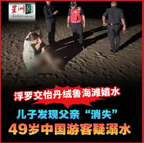 他说,失踪者的儿子在发现父亲失踪后,立即向酒店求助,酒店方随后通报大马海事执法机构,再联系消拯局投入展开搜救行动 经过一夜搜救后,兰卡威当地警方发布消息,在附近海域找到了遇难者遗体,来自中国上海,与妻儿春节到马来西亚度假