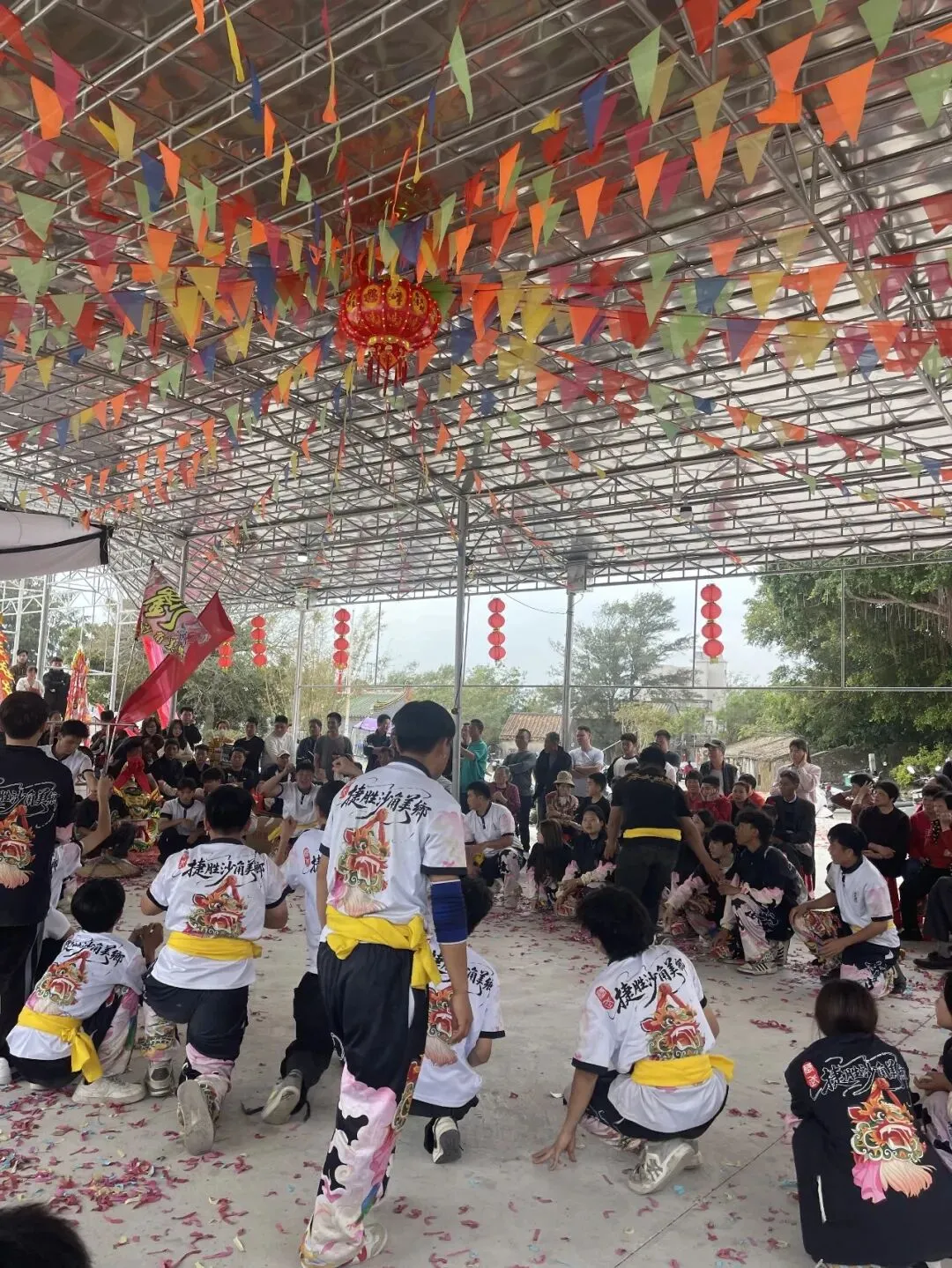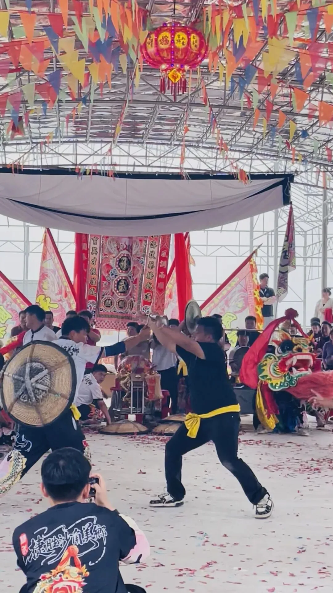 捷胜沙角尾村天后宫前,本村虎狮队前来参拜,它不只是一项民俗,更是刻在海陆丰人血脉里的精气神——热闹里藏着坚守,欢腾中带着敬畏。愿这麒麟,永远在乡野间跃动,把老祖宗的精气神,一代又一代传下去。