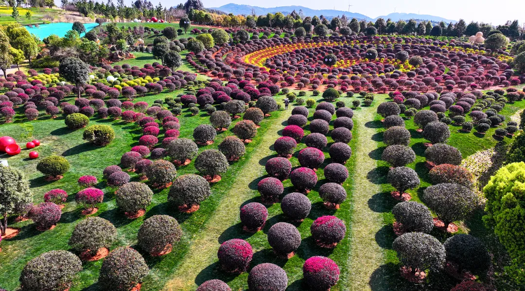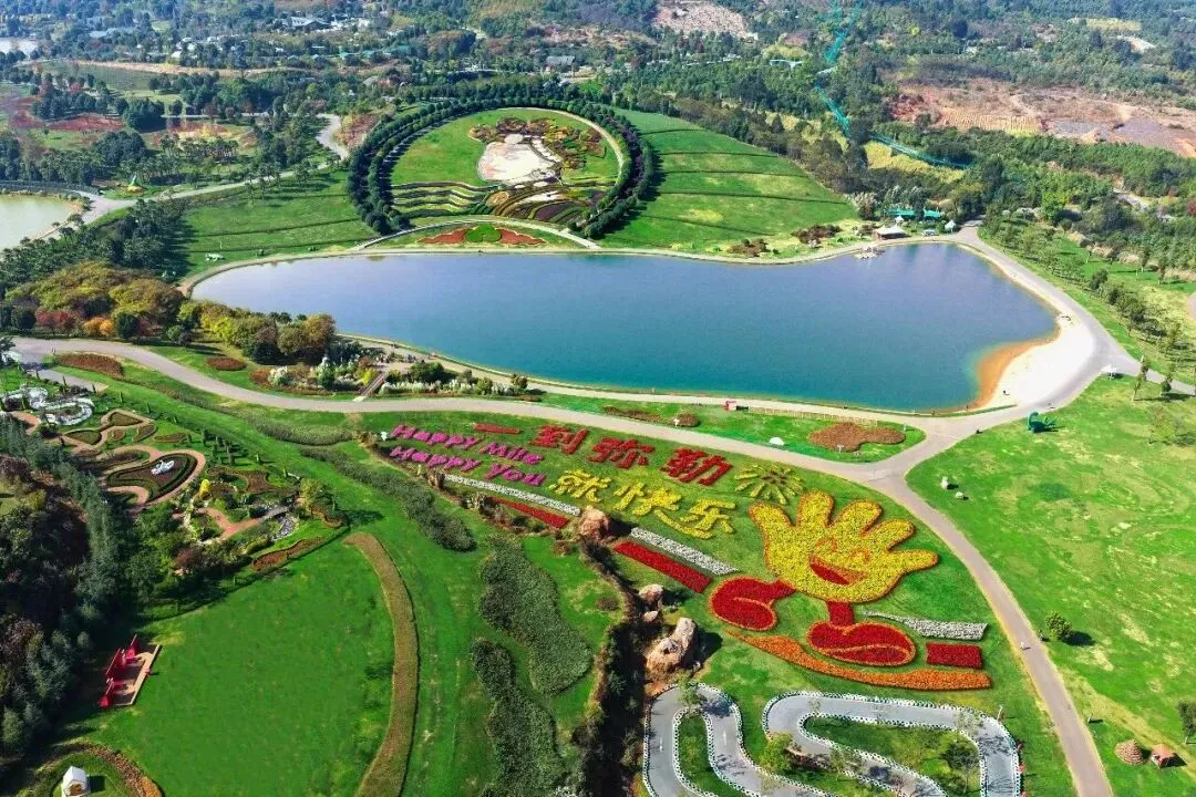 今年春节 弥勒太平湖森林公园 13万株郁金香铺成花海 用大地艺术的笔触勾勒出 “一到弥勒就快乐” 的浪漫造型 让游客解锁别样的新年仪式感
