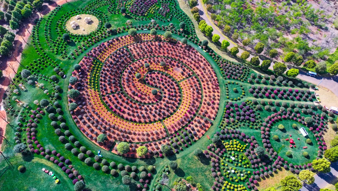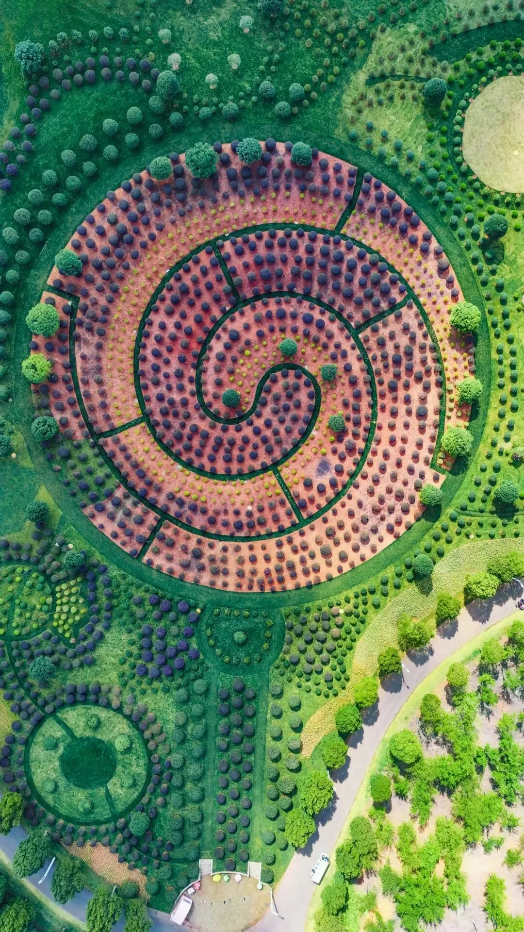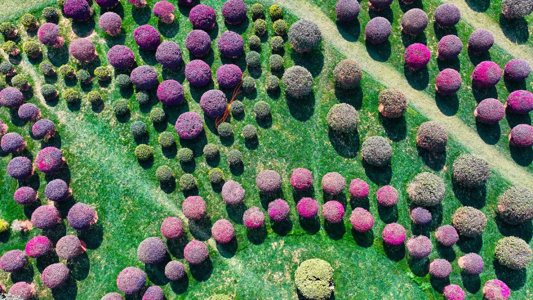 组成一颗巨型“棒棒糖”的梦幻绿植迷宫