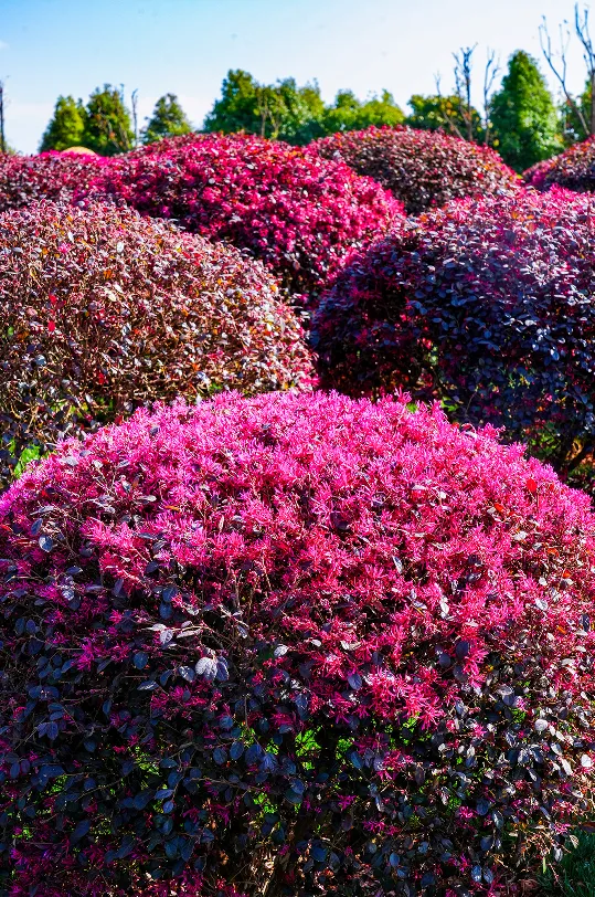种有红花继木球、红叶石楠球、小叶女贞球