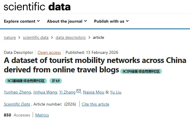 英文标题:A dataset of tourist mobility networks across China derived from online travel blogs