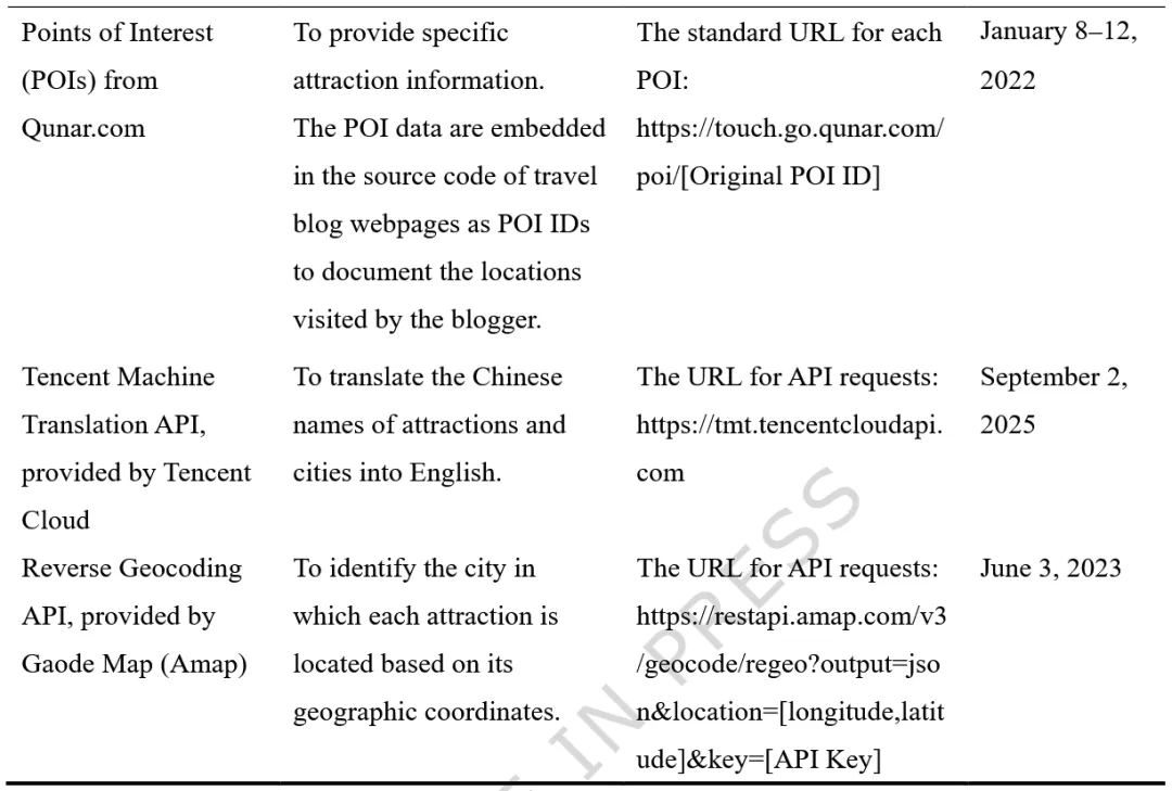(3)Jin, C., Cheng, J. & Xu, J. (2018). Using User-Generated Content to Explore the Temporal Heterogeneity in Tourist Mobility. J TRAVEL RES, 57, 779(使用旅游博客研究时空行为的前置工作).