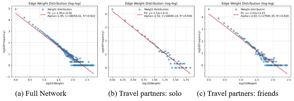 尽管在线旅游博客存在用户群体偏差(如偏向休闲游、年轻白领),但其海量数据聚合后依然能够有效反映真实世界宏观与中观层面的游客空间流动结构与拓扑特征。