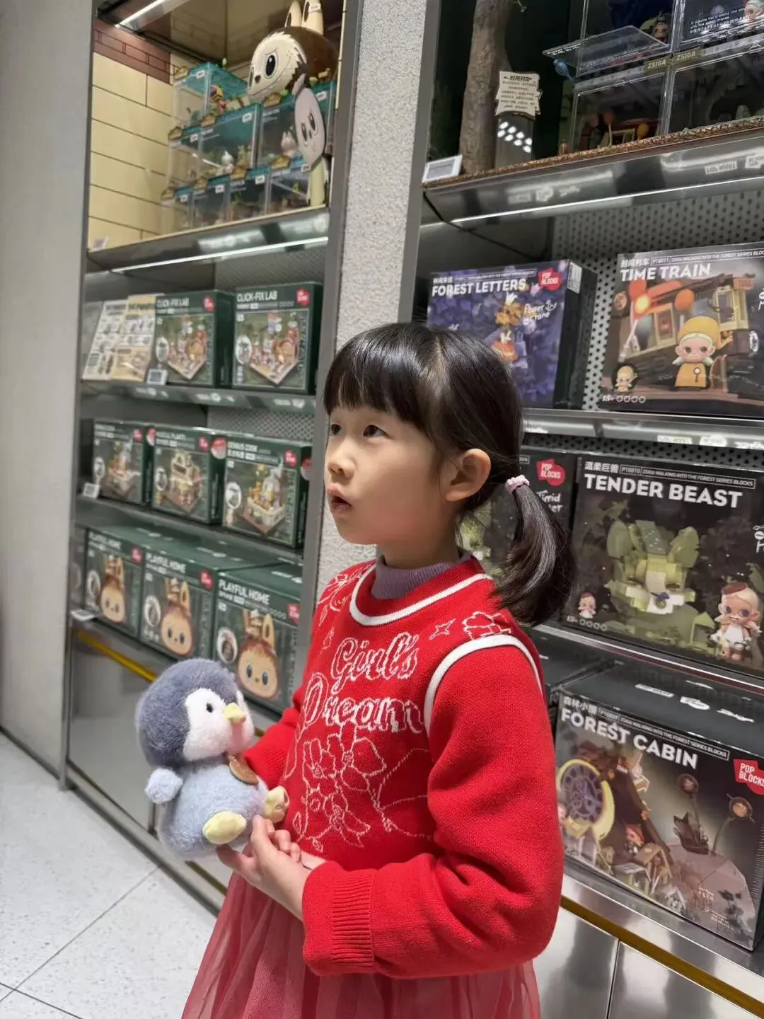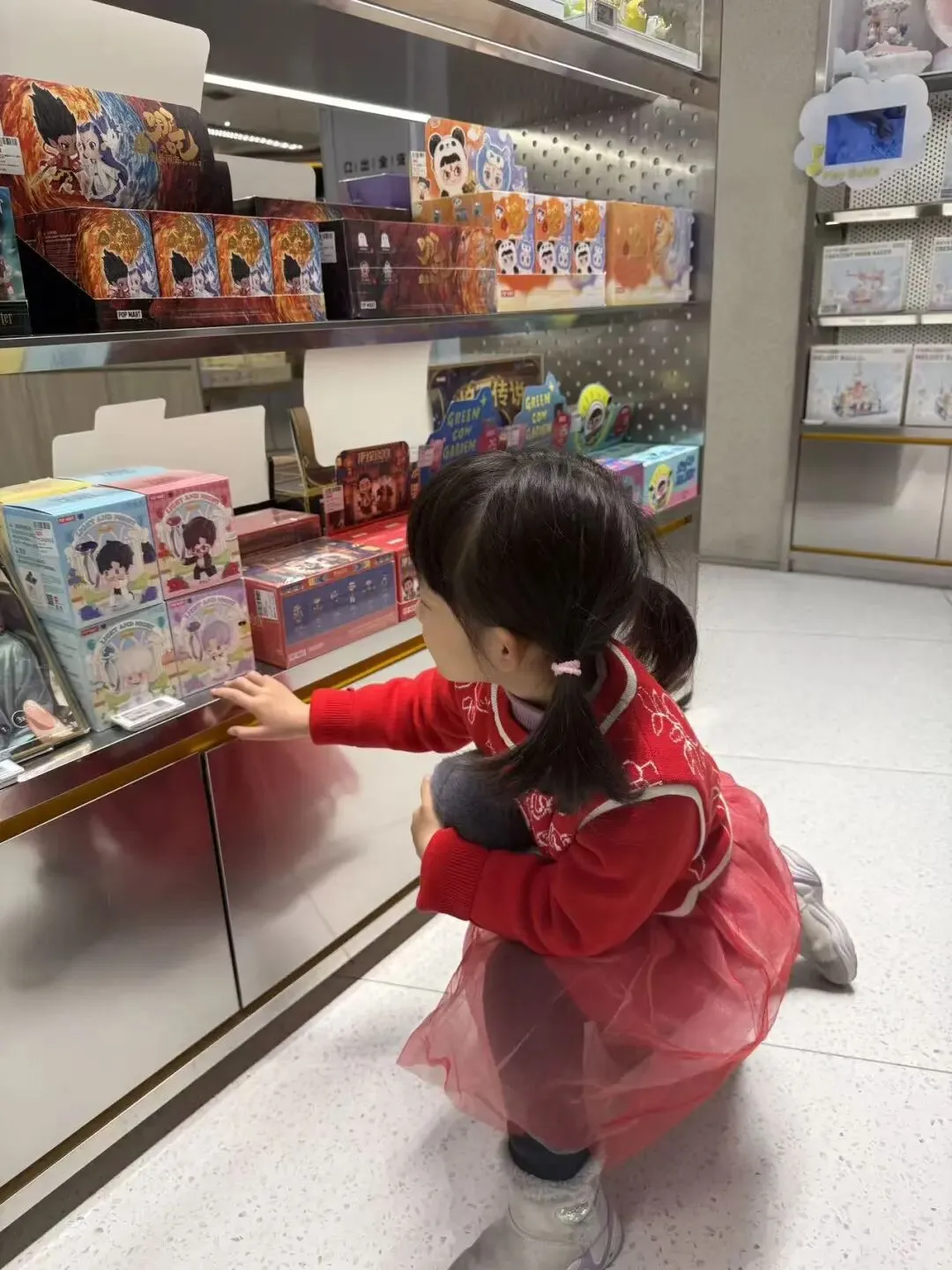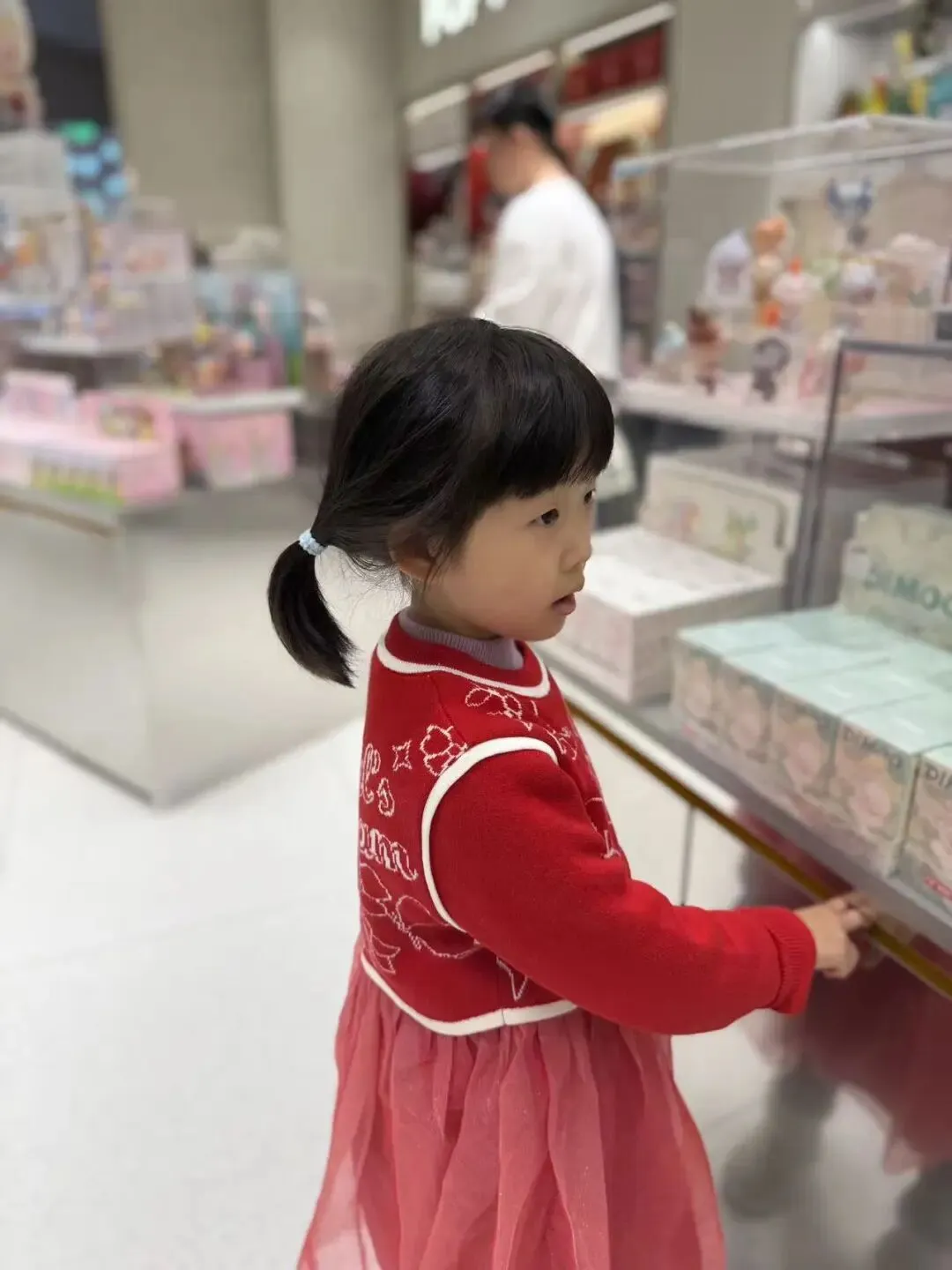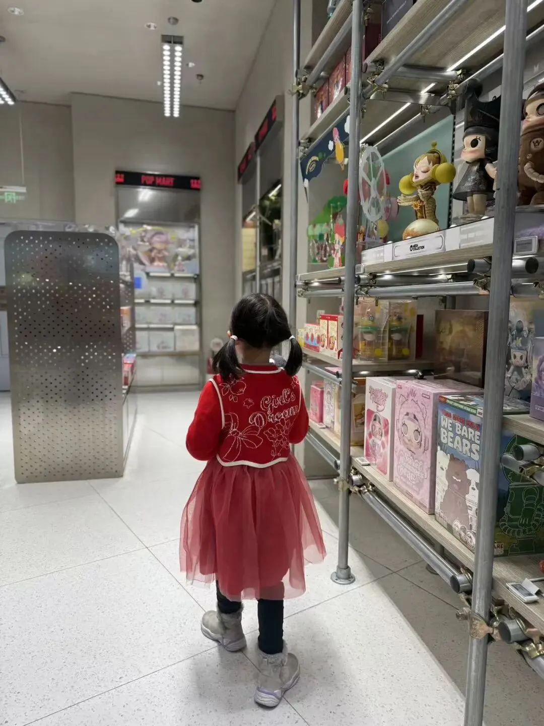 爸爸带我去楼下的泡泡玛特买东西。